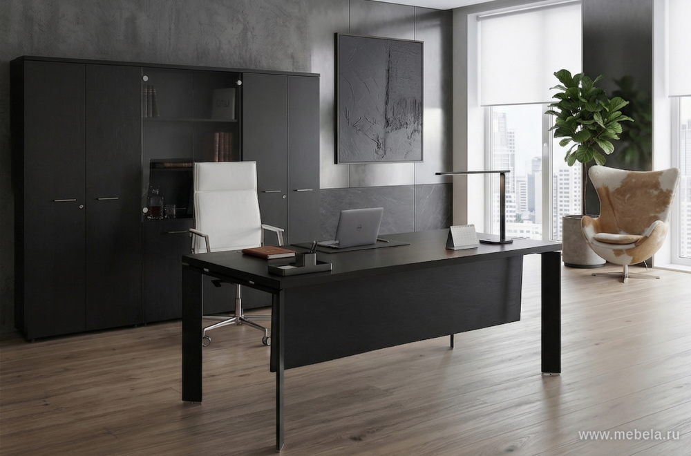 Если вы привыкли выделяться из общей серой массы, то мебель для кабинетов Фермо М отлично поможет это сделать. Блестящие развернутые ножки столов, волнистая геометрия полок в открытых шкафах и еще множество дизайнерских приемов прекращают простую офисную мебель Fermo в произведение современного искусства.