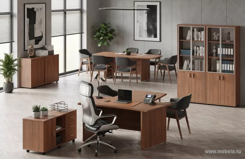 Скучное офисное пространство преобразится с кабинетами руководителя Grand PX +. Их декоративные элементы и динамичные линии делают интерьер современным. Комбинированное использование разных материалов создает неповторимый образ офисной мебели.