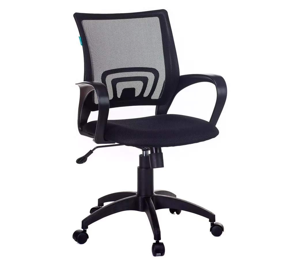 Ткань черного цвета, которой обтянуто сидение кресла, отличается своей прочностью и износостойкостью. Предусмотрен механизм качания. Пятилучевая крестовина изготовлена из прочного пластика. В сочетании с поворотными колесиками, она позволяет креслу легко и бесшумно передвигаться по любому наполь...
