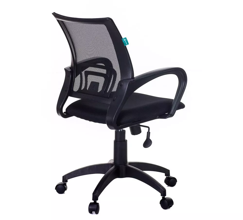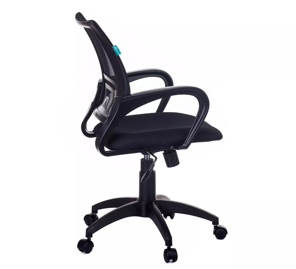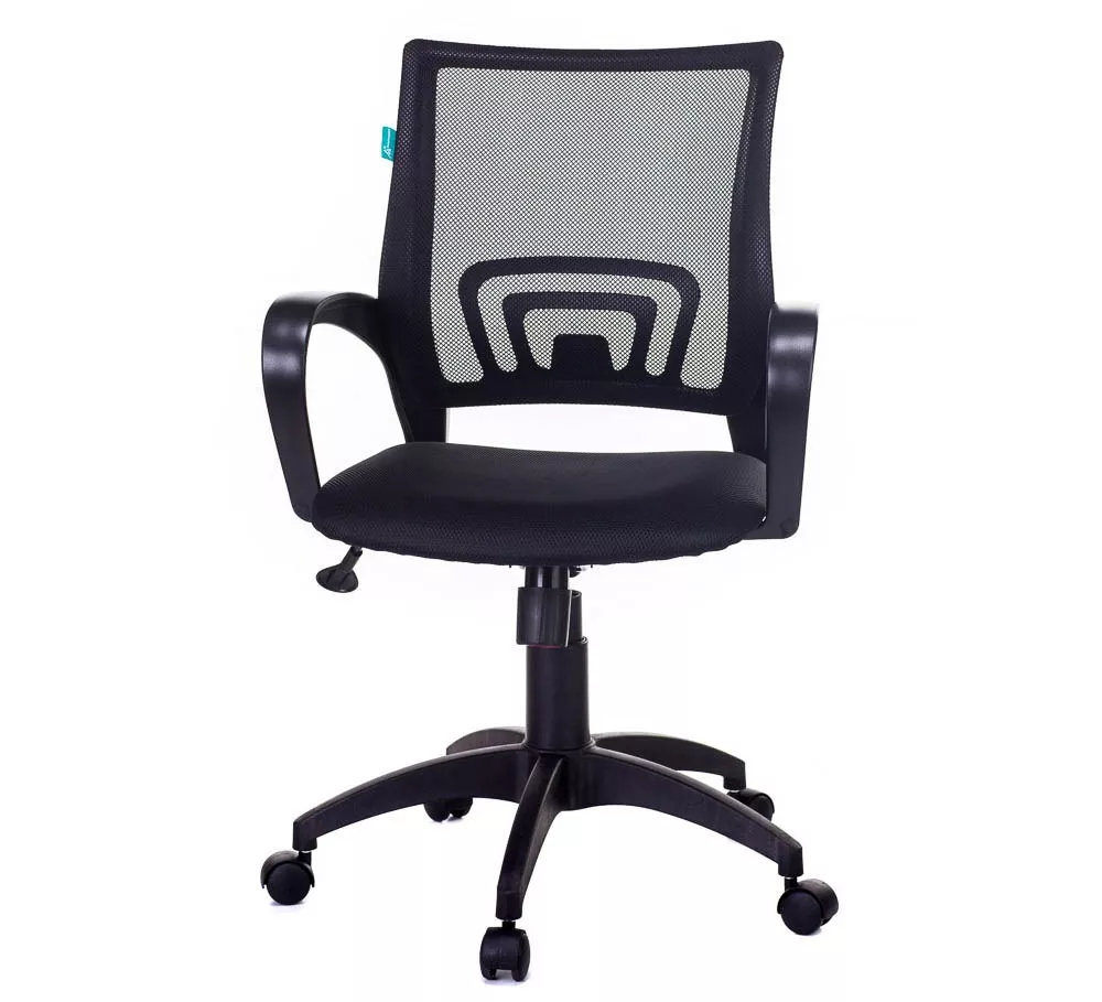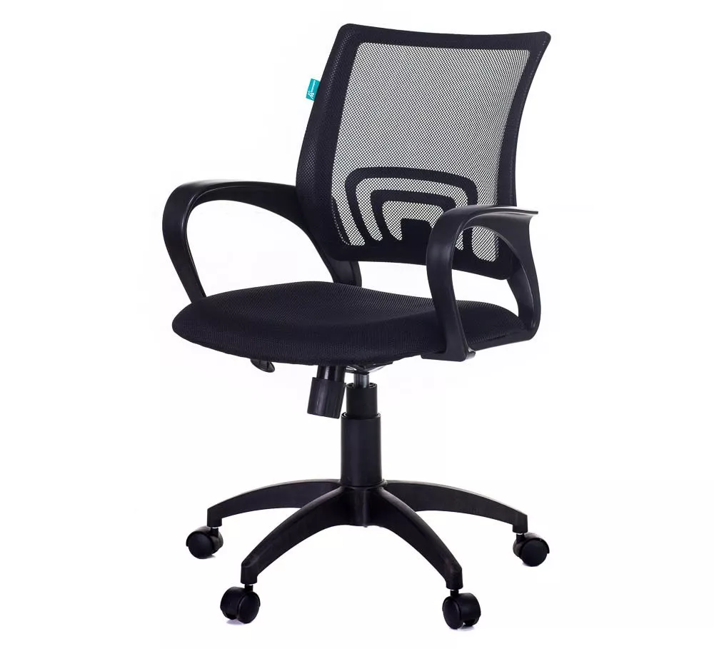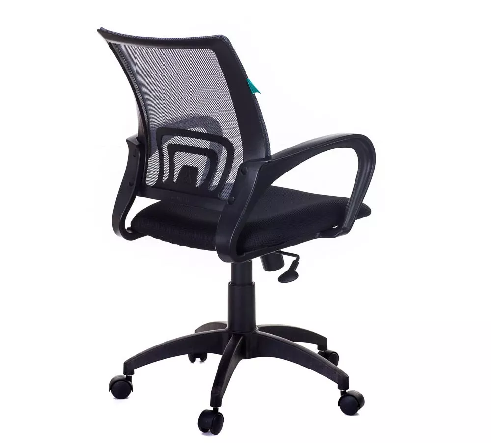 Ткань черного цвета, которой обтянуто сидение кресла, отличается своей прочностью и износостойкостью. Предусмотрен механизм качания. Пятилучевая крестовина изготовлена из прочного пластика. В сочетании с поворотными колесиками, она позволяет креслу легко и бесшумно передвигаться по любому напольному покрытию. Ограничения - вес более 120 кг.