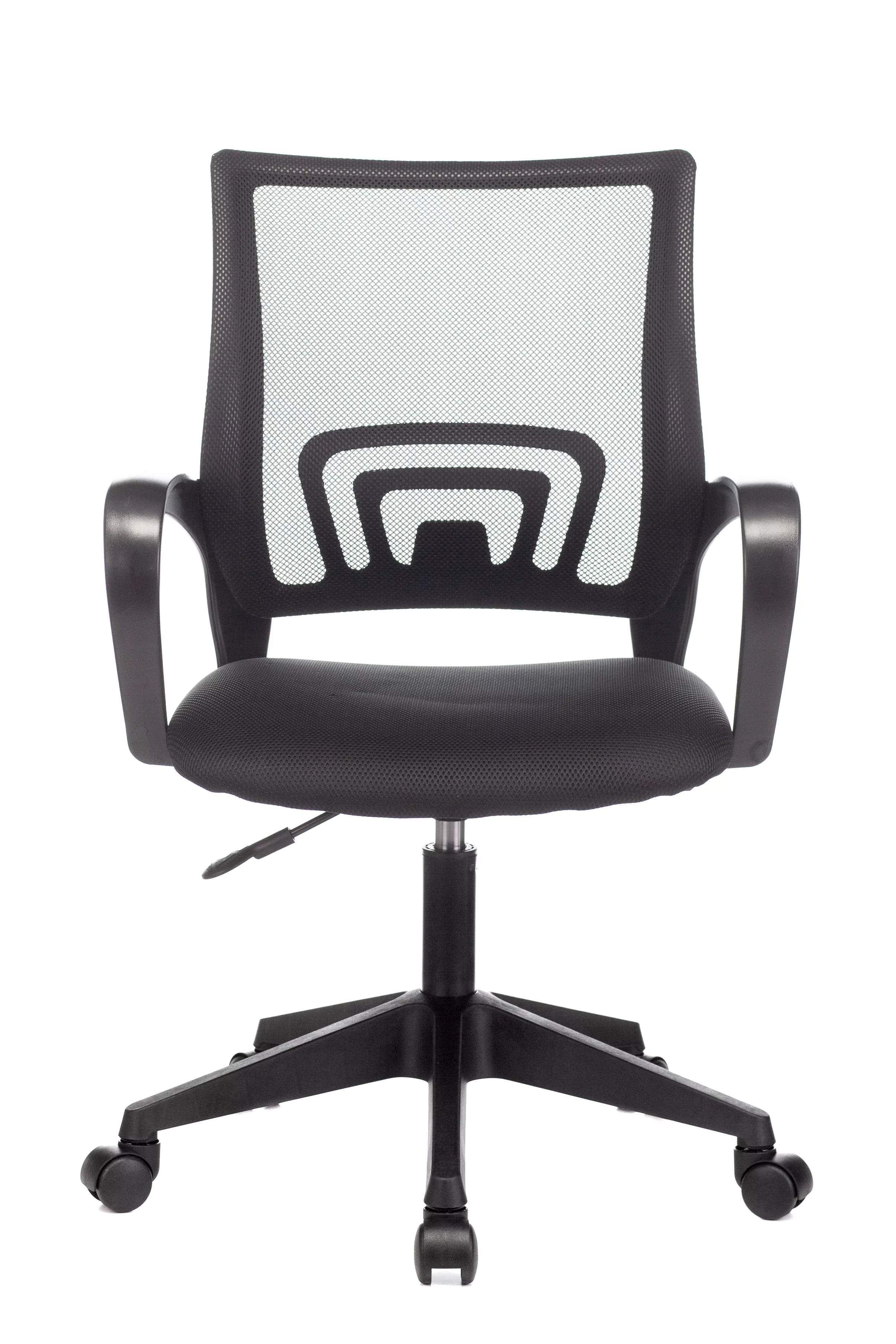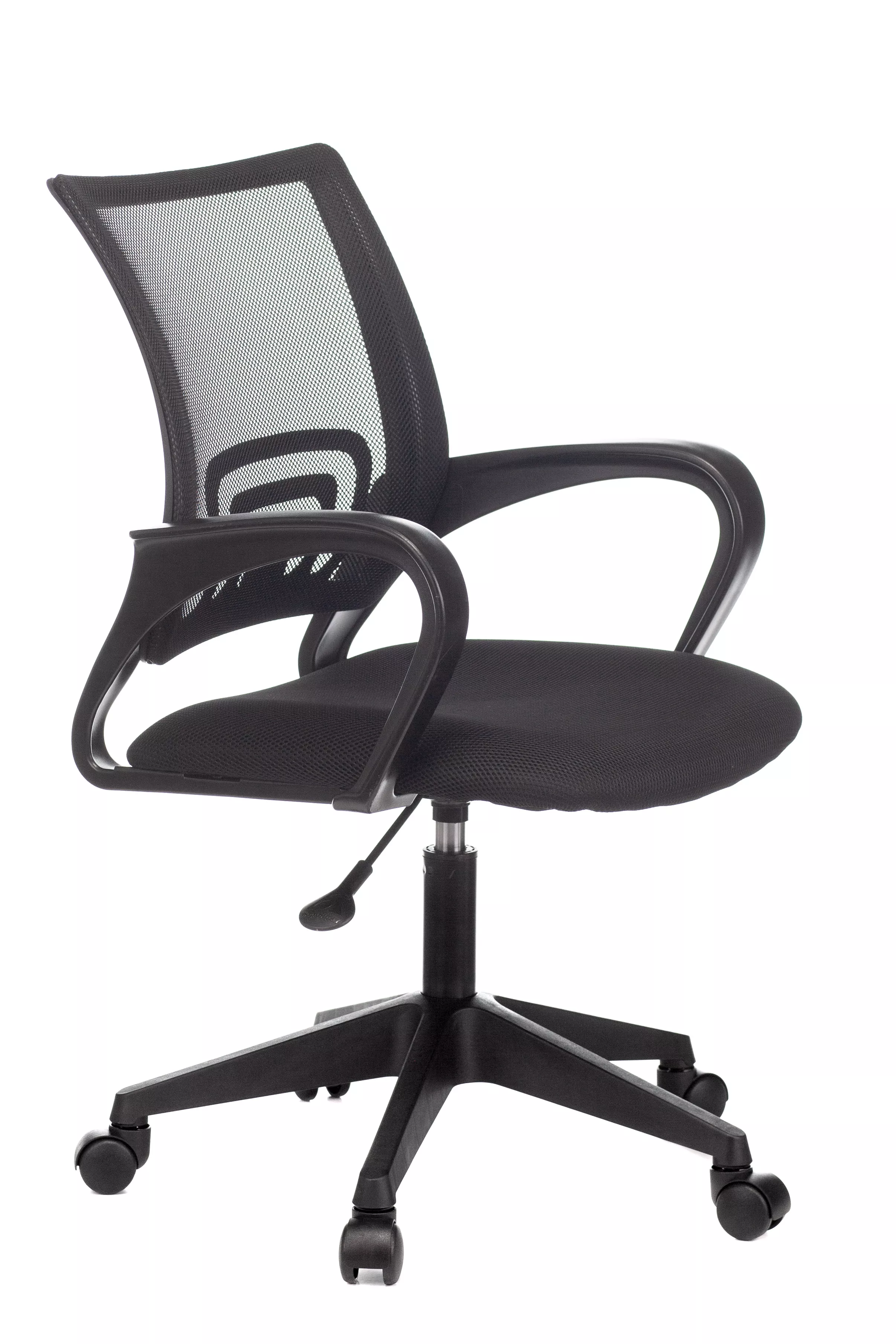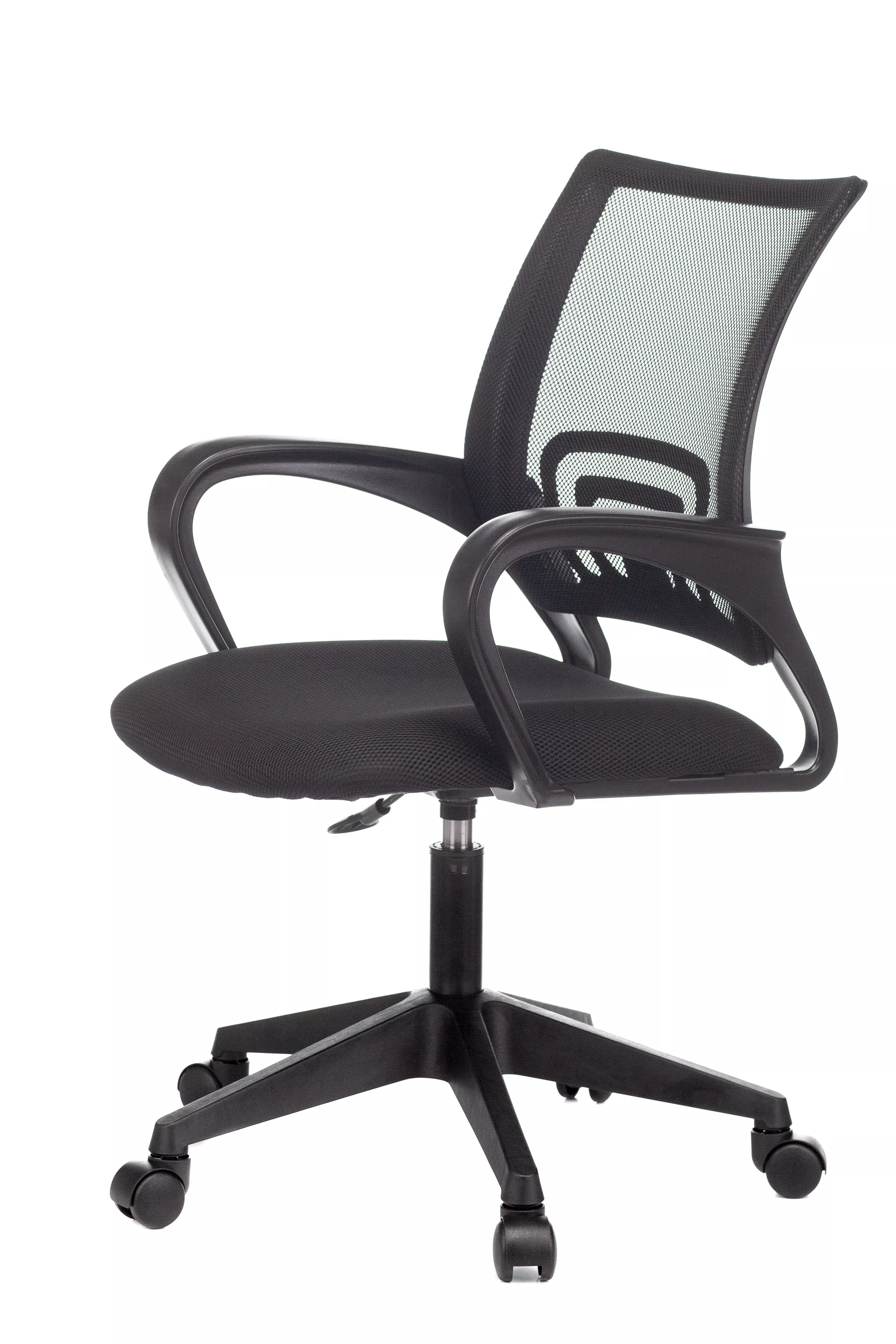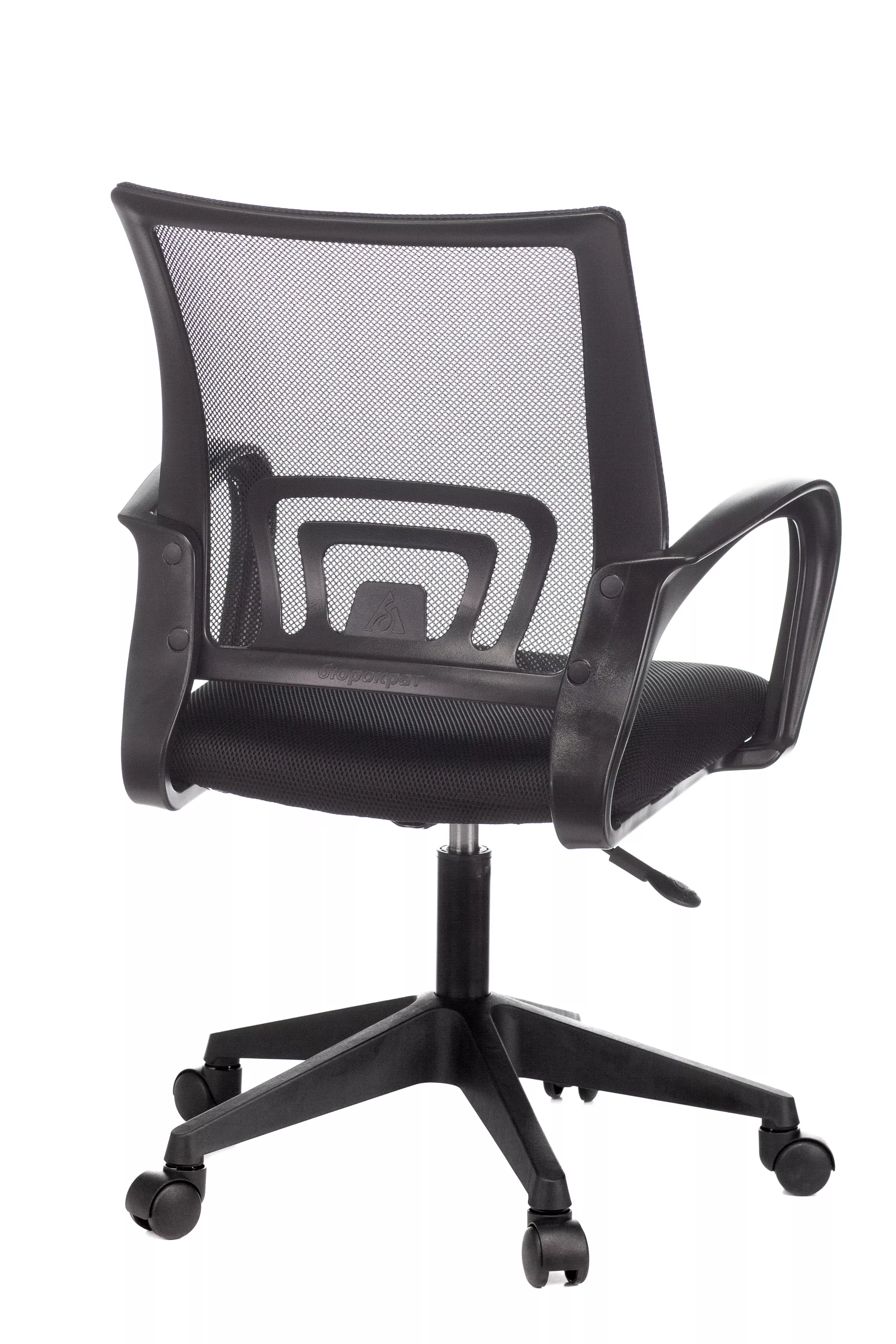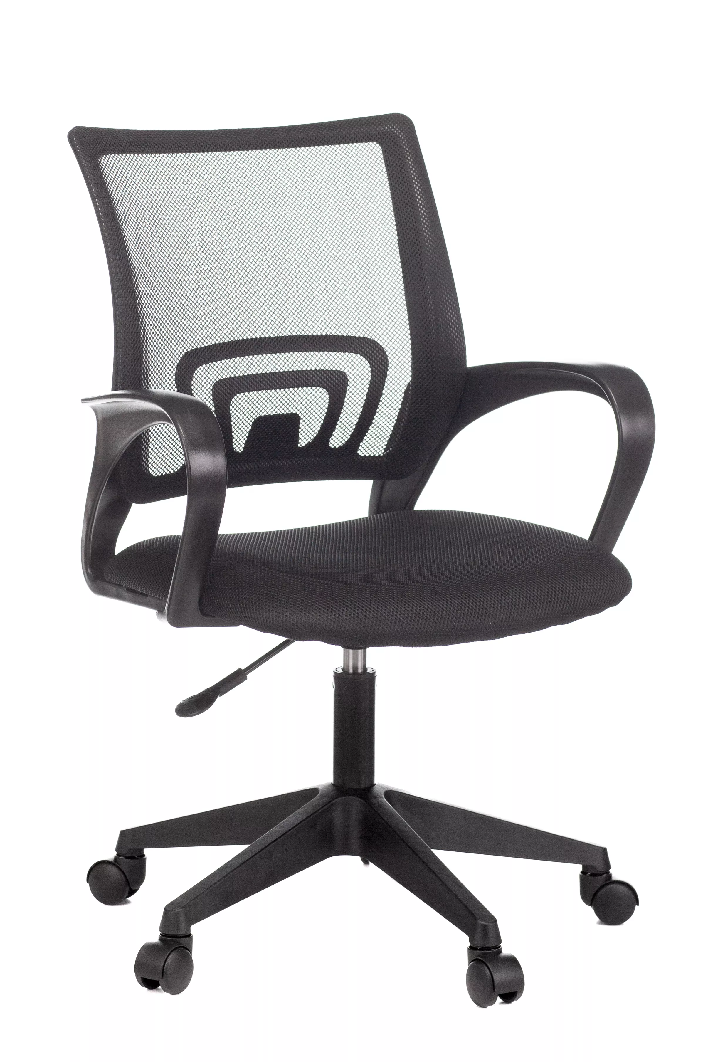 Ткань черного цвета, которой обтянуто сидение кресла, отличается своей прочностью и износостойкостью.Пятилучевая крестовина изготовлена из прочного пластика. В сочетании с поворотными колесиками, она позволяет креслу легко и бесшумно передвигаться по любому напольному покрытию. Ограничения - вес...