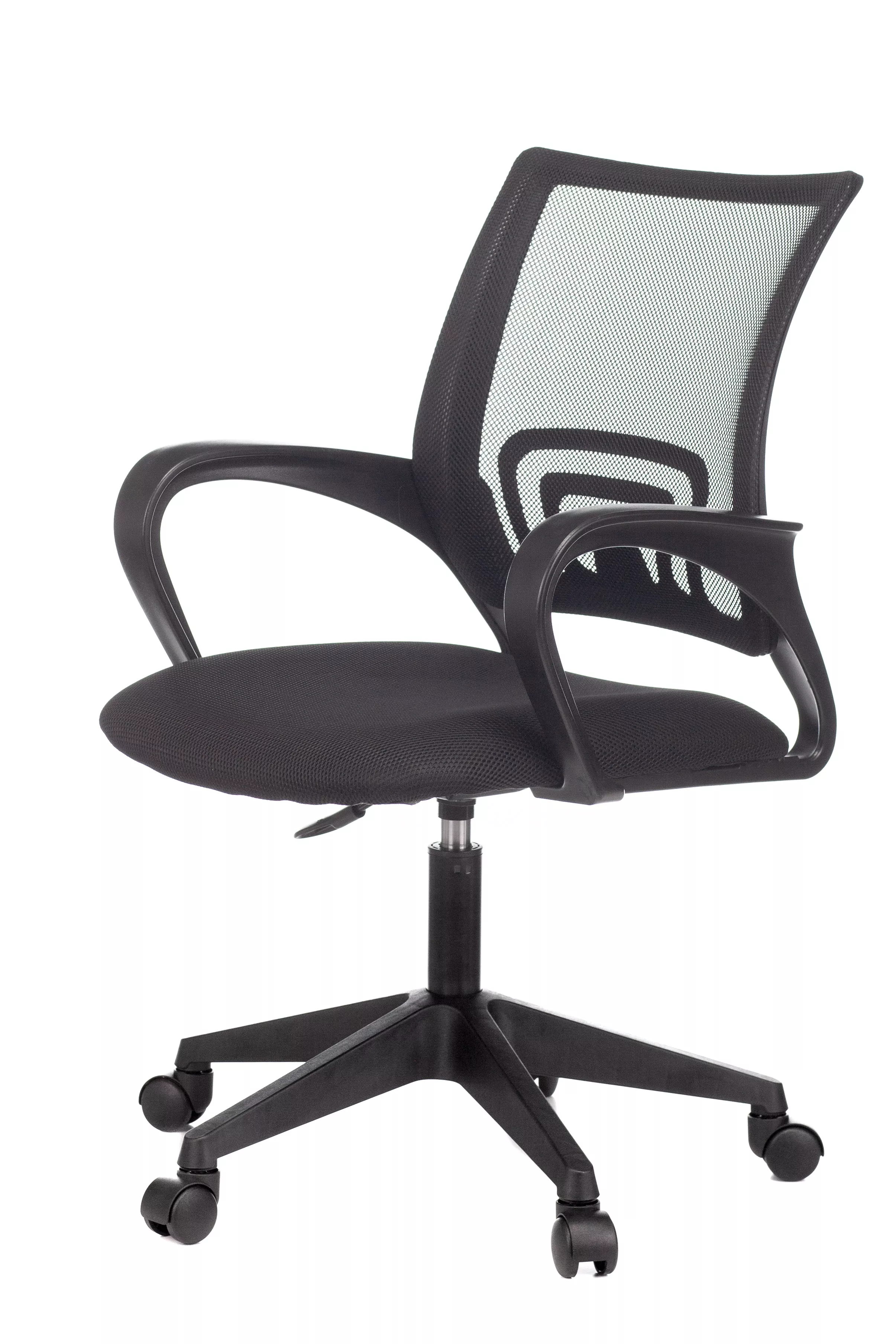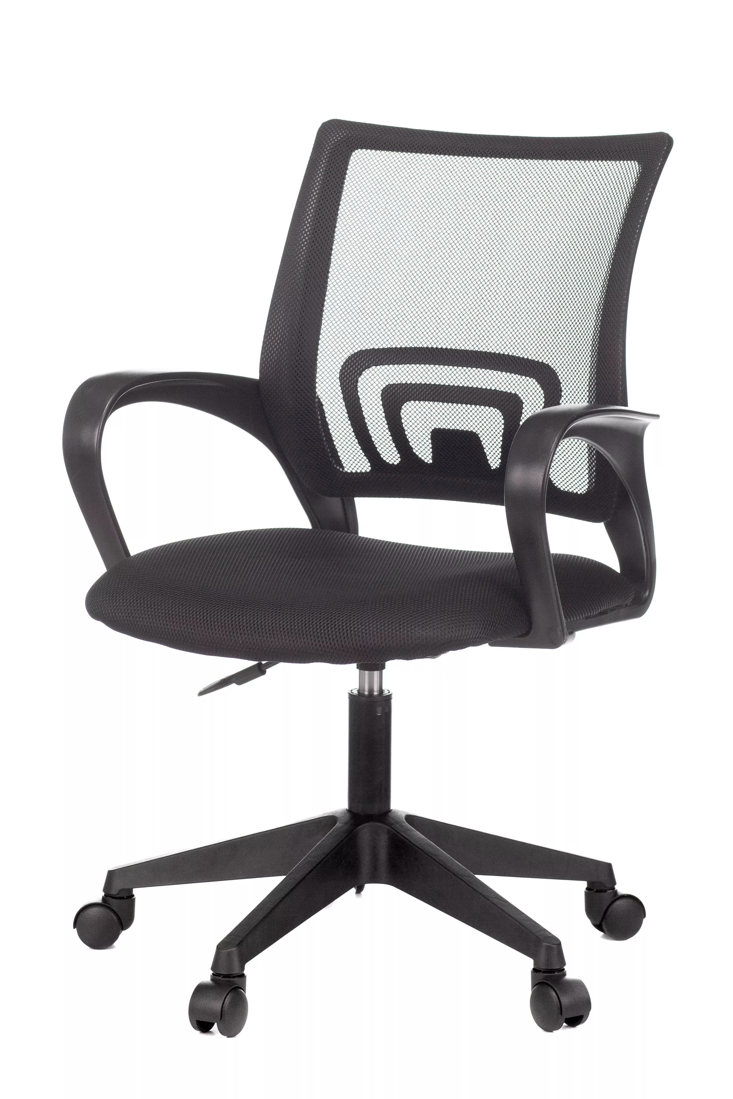 Ткань черного цвета, которой обтянуто сидение кресла, отличается своей прочностью и износостойкостью.Пятилучевая крестовина изготовлена из прочного пластика. В сочетании с поворотными колесиками, она позволяет креслу легко и бесшумно передвигаться по любому напольному покрытию. Ограничения - вес более 120 кг.