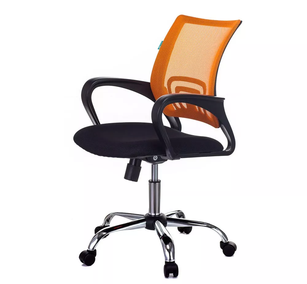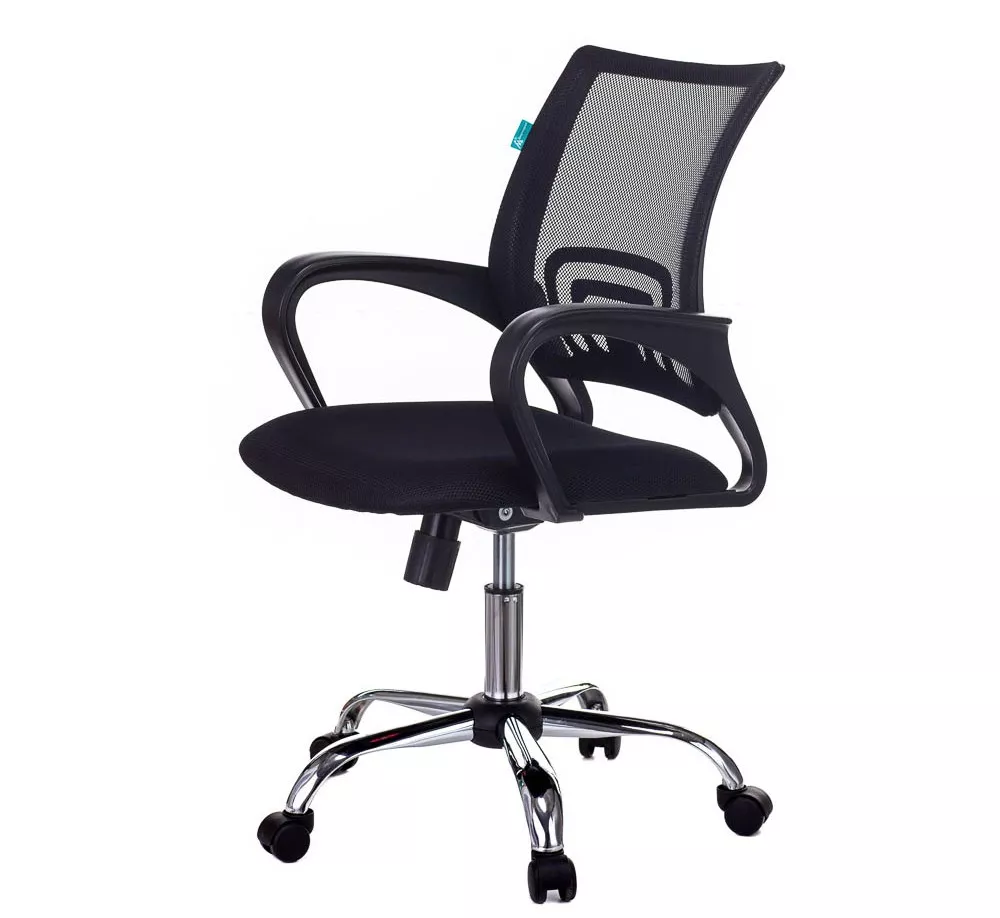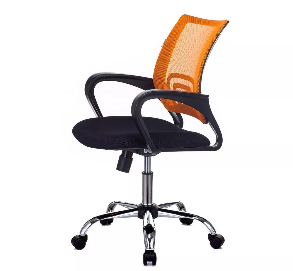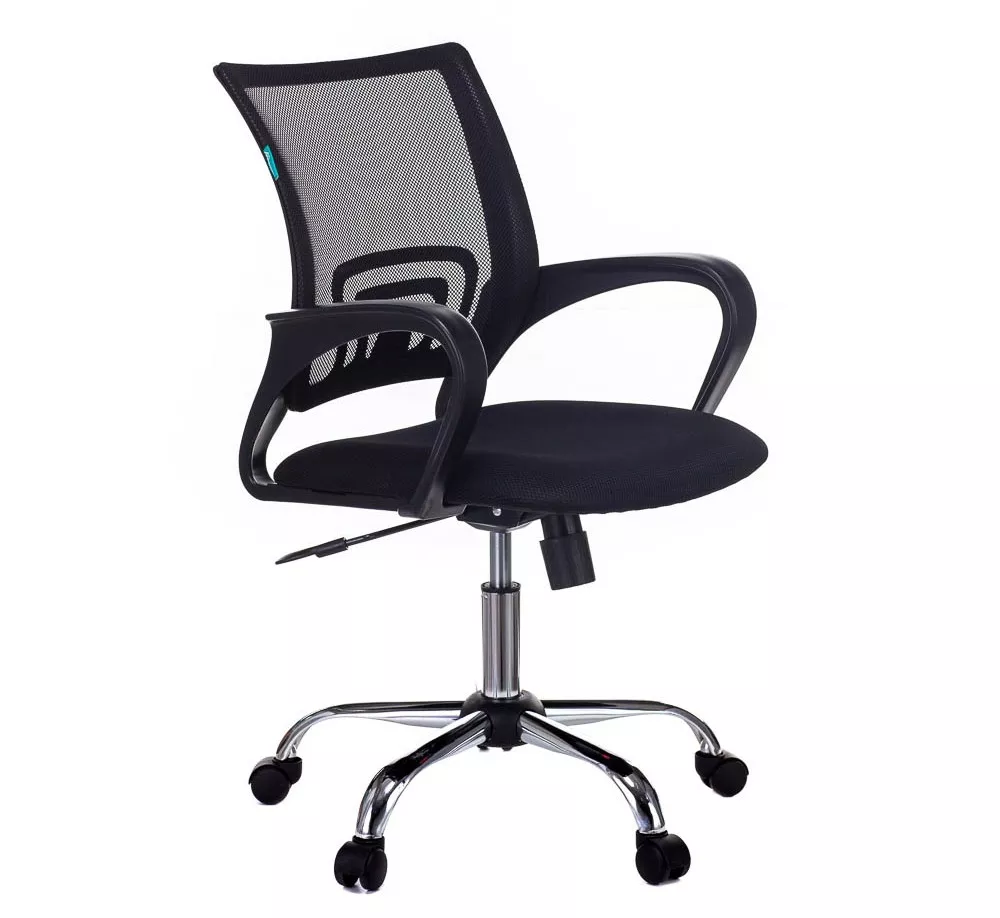 Хромированные элементы кресла выглядят стильно в любом интерьере. Для обивки сидения использована ткань, устойчивая к растяжению, истиранию. В лаконичный дизайн изделия прекрасно вписываются пластиковые подлокотники, которые будут очень удобными для владельца кресла. Хромированная пятилучевая крестовина с поворотными колесиками делает