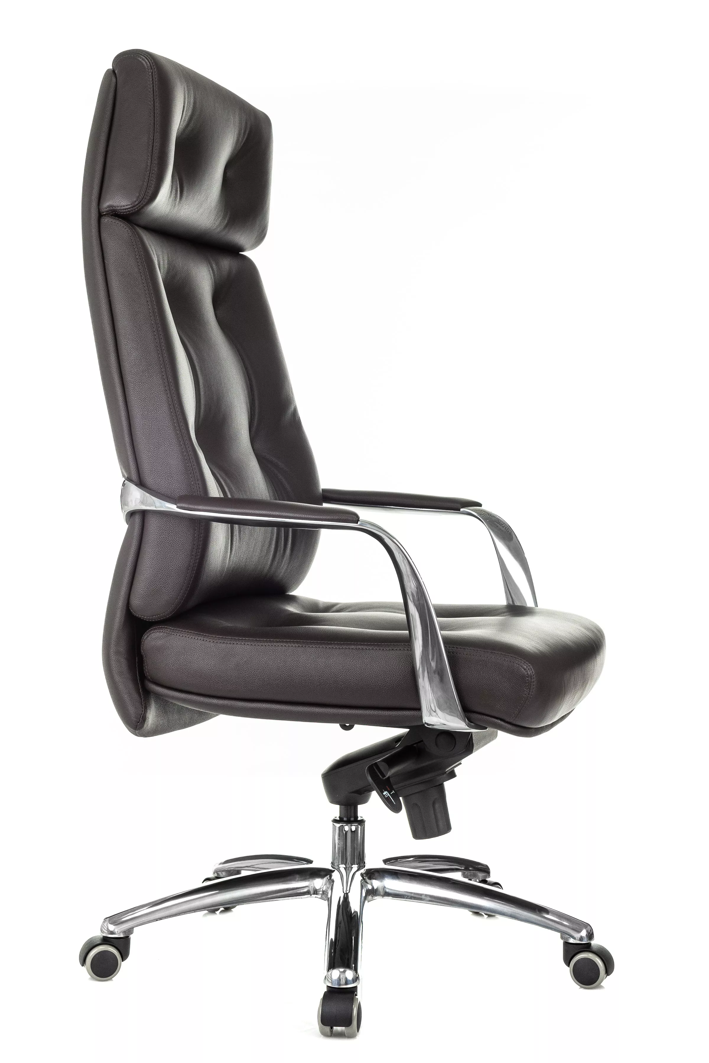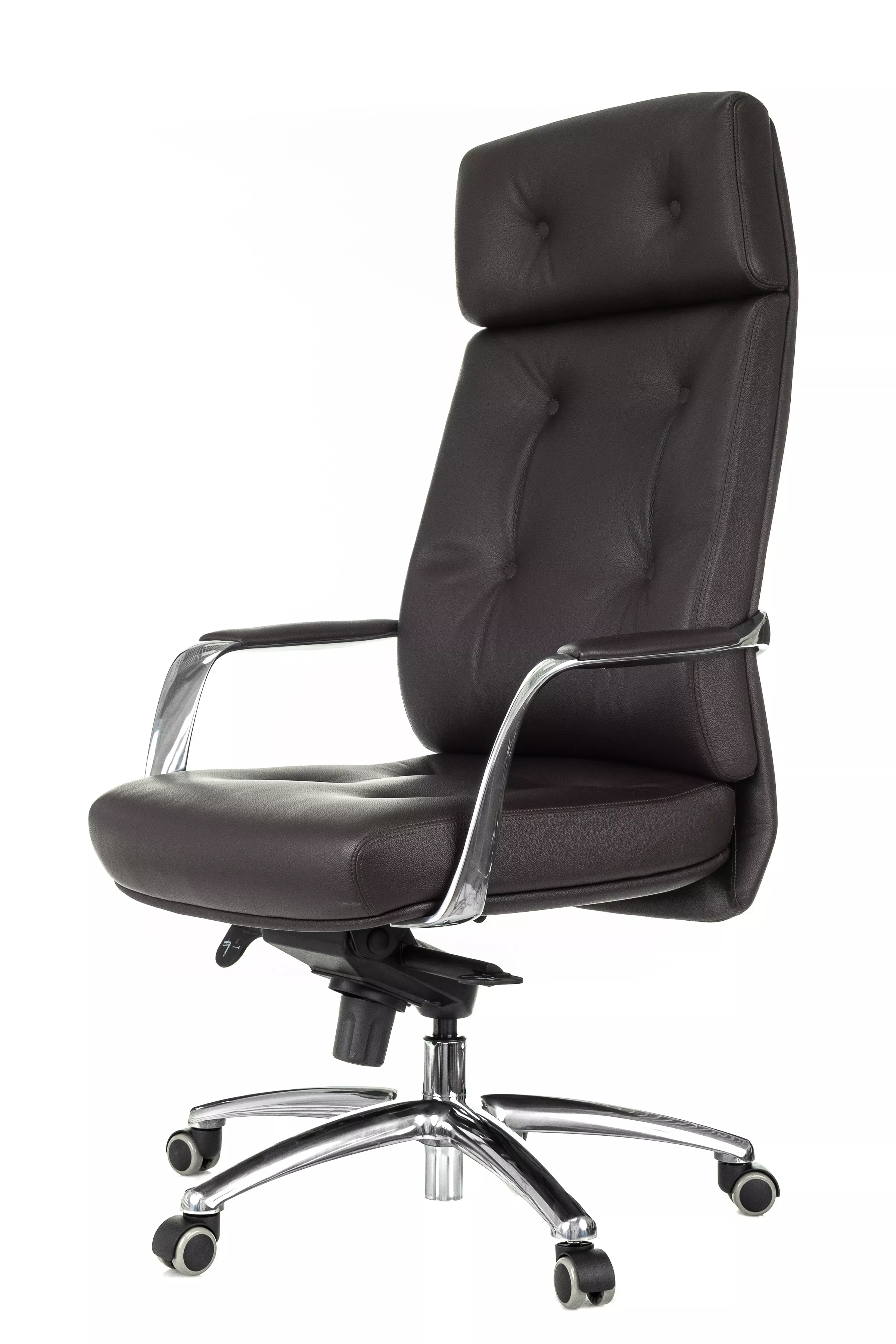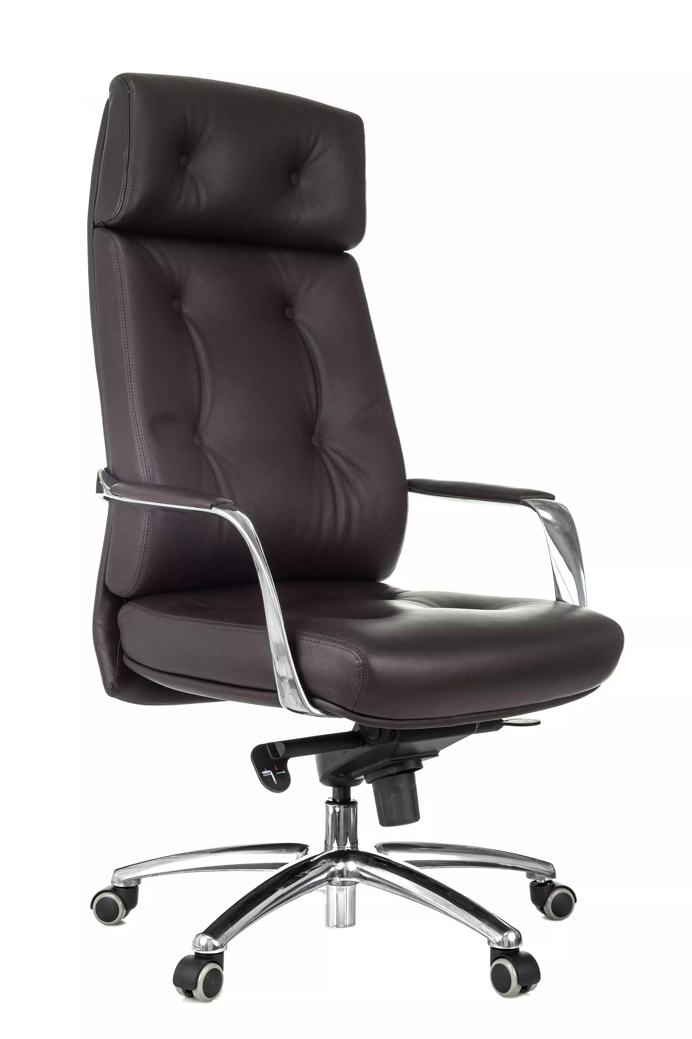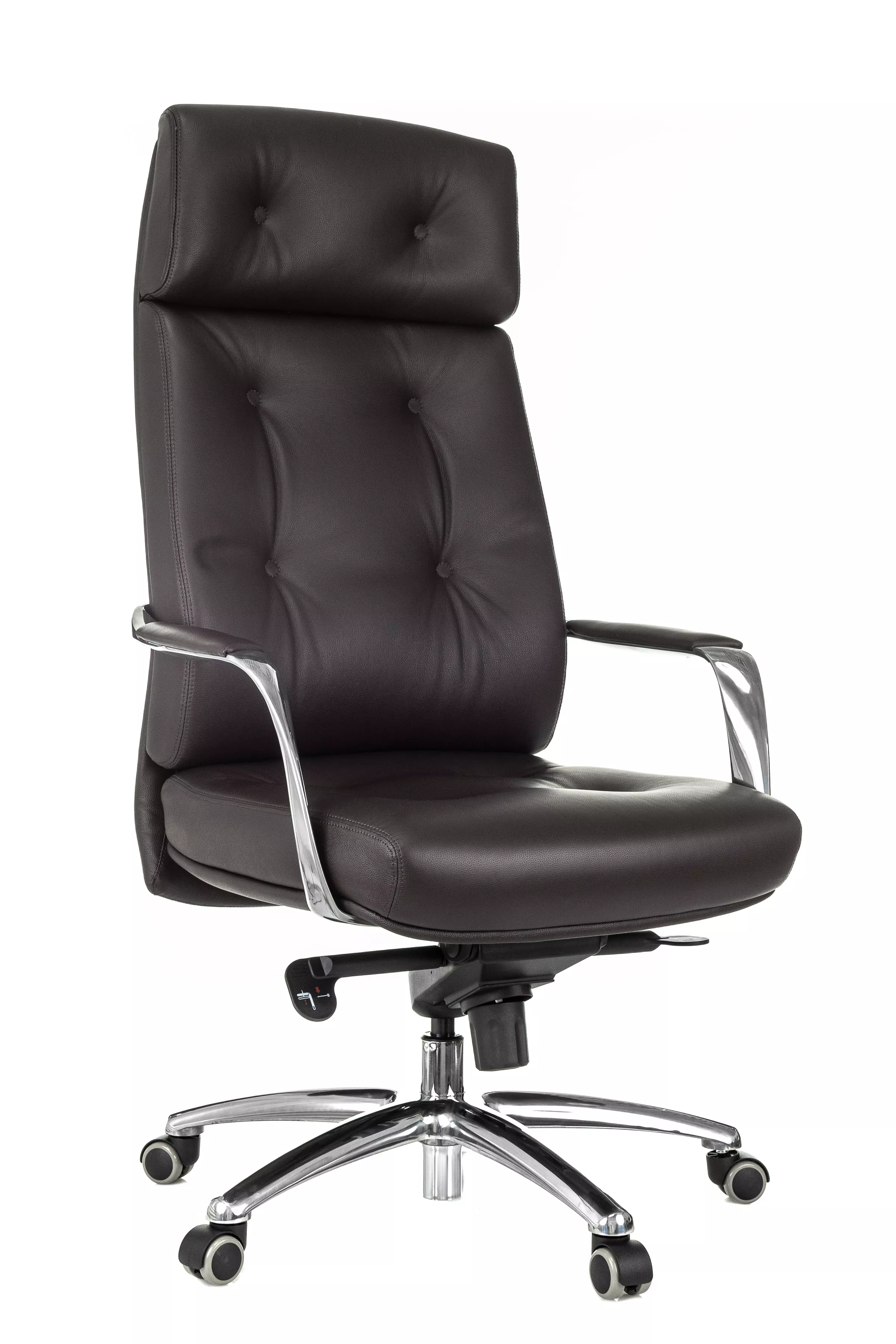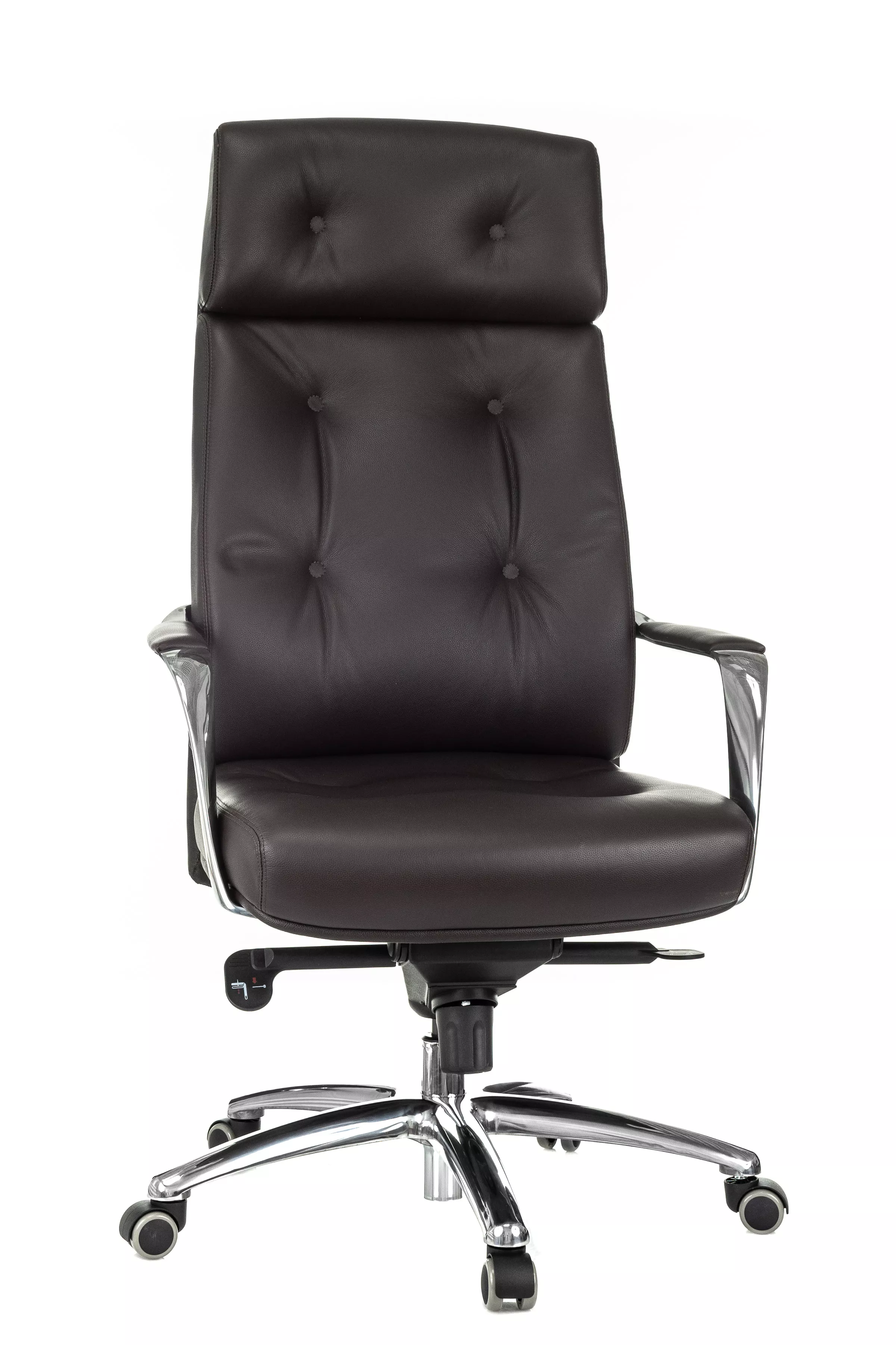 Массивная обивка с декоративными элементами у кресла для руководителей Дао создают солидный образ. Он не уступает громоздким стационарным моделям мебели, но остается мобильным за счет колесной базы. Хромированные подлокотники подчеркивают современный стиль кресла. Специальная форма крепления газового амортизатора к сиденью повышает его эффективность, снижая давление на бедра и позвоночный столб.
