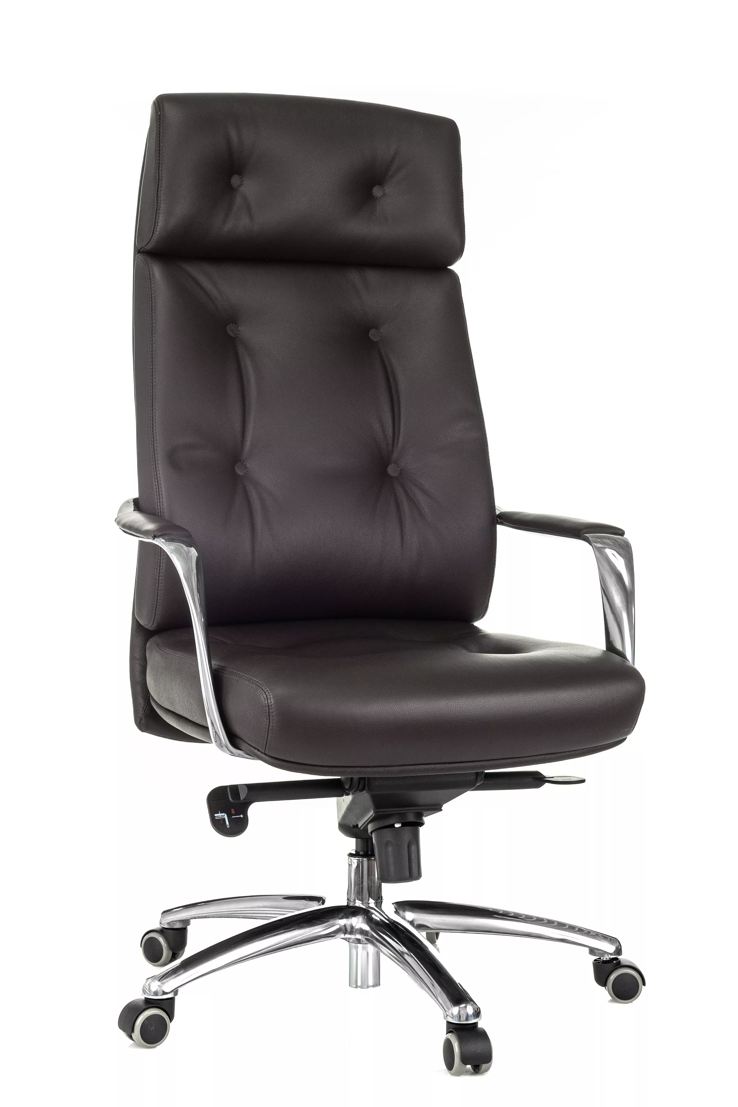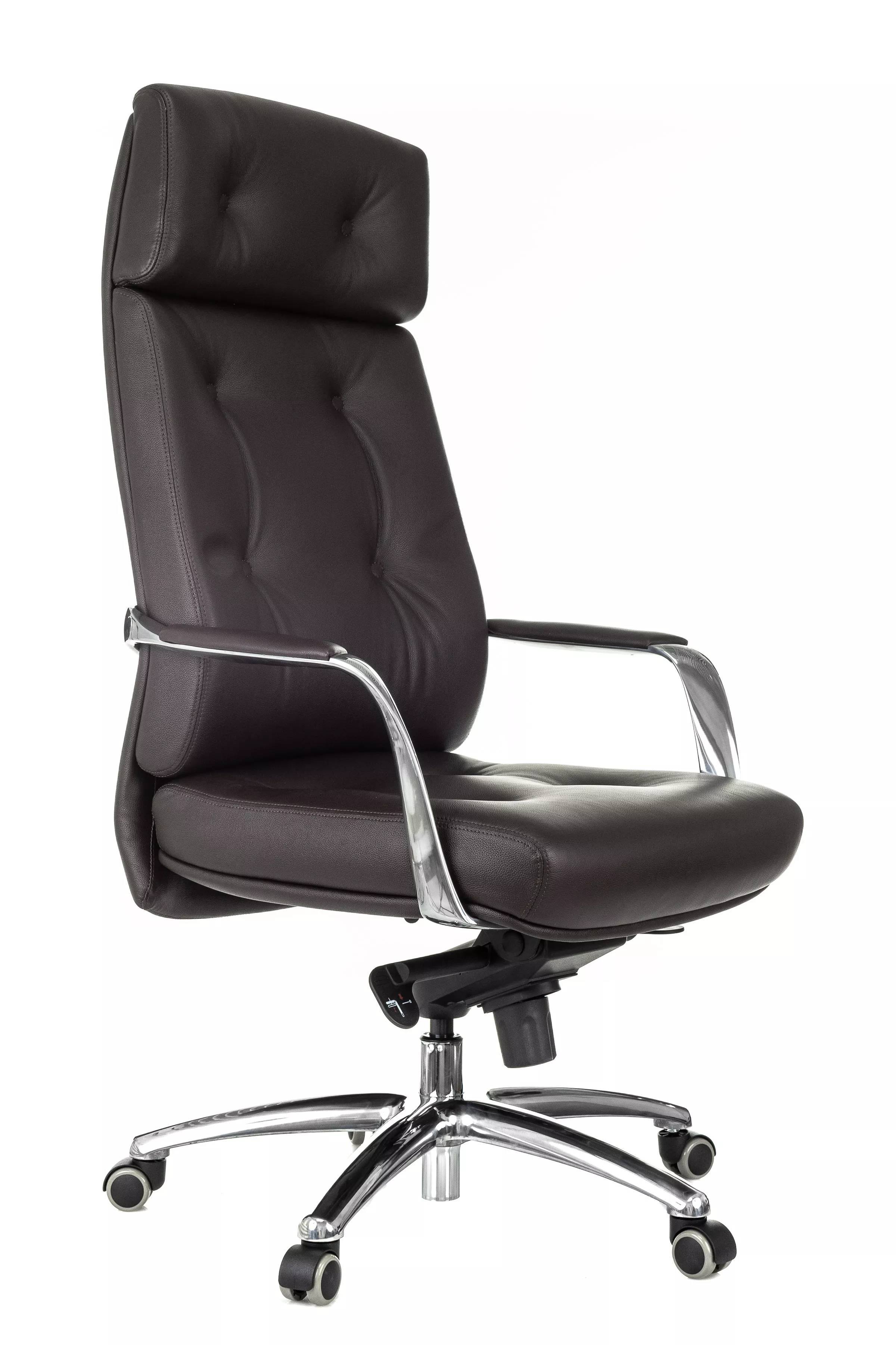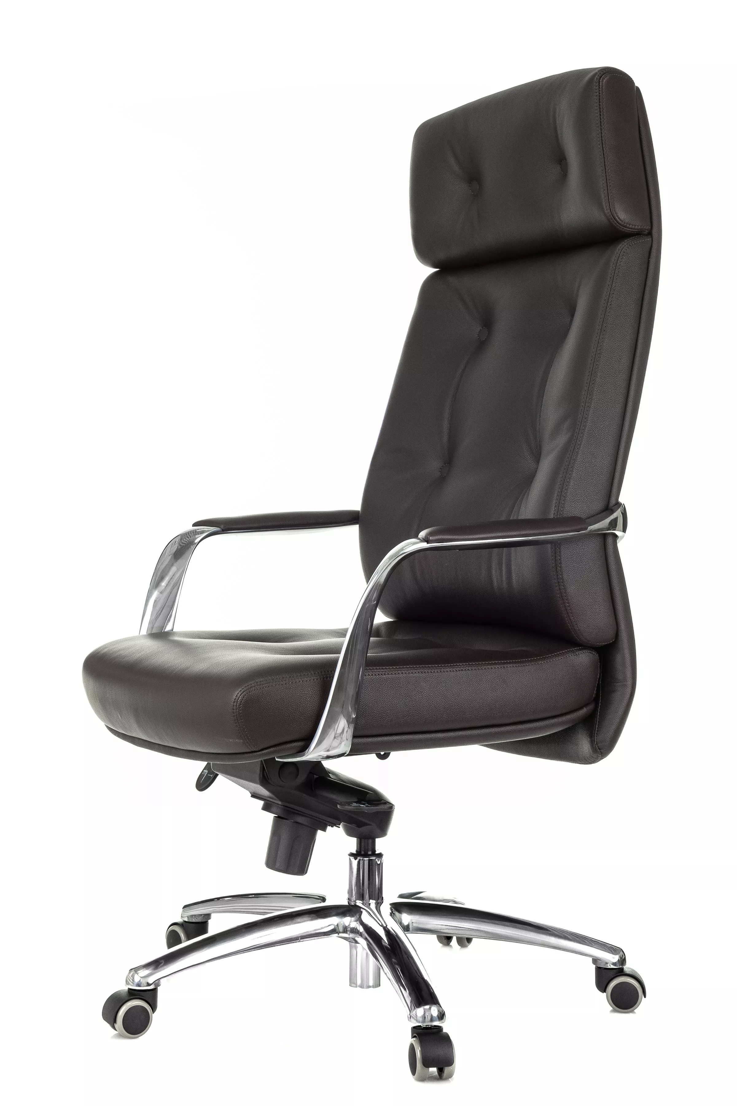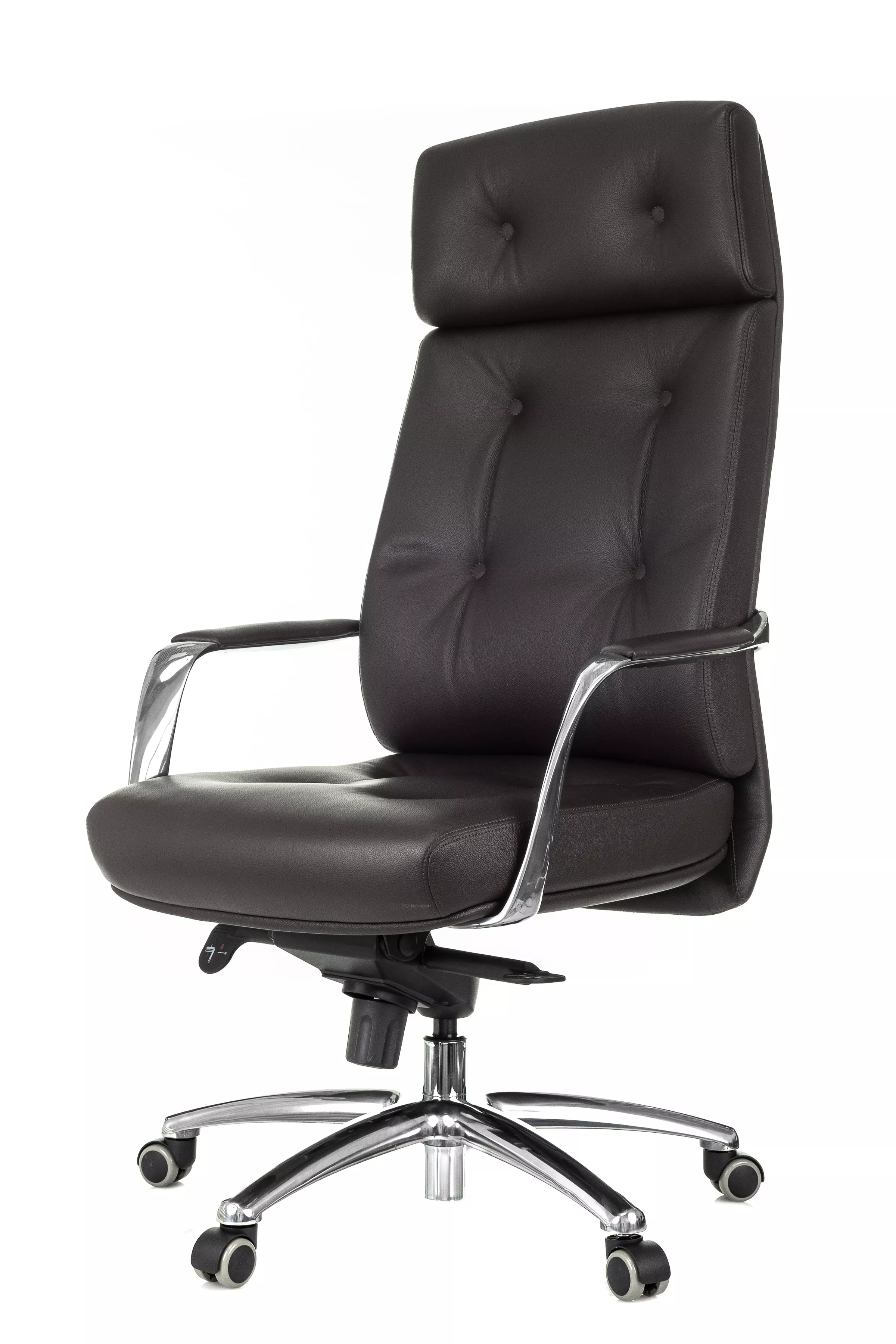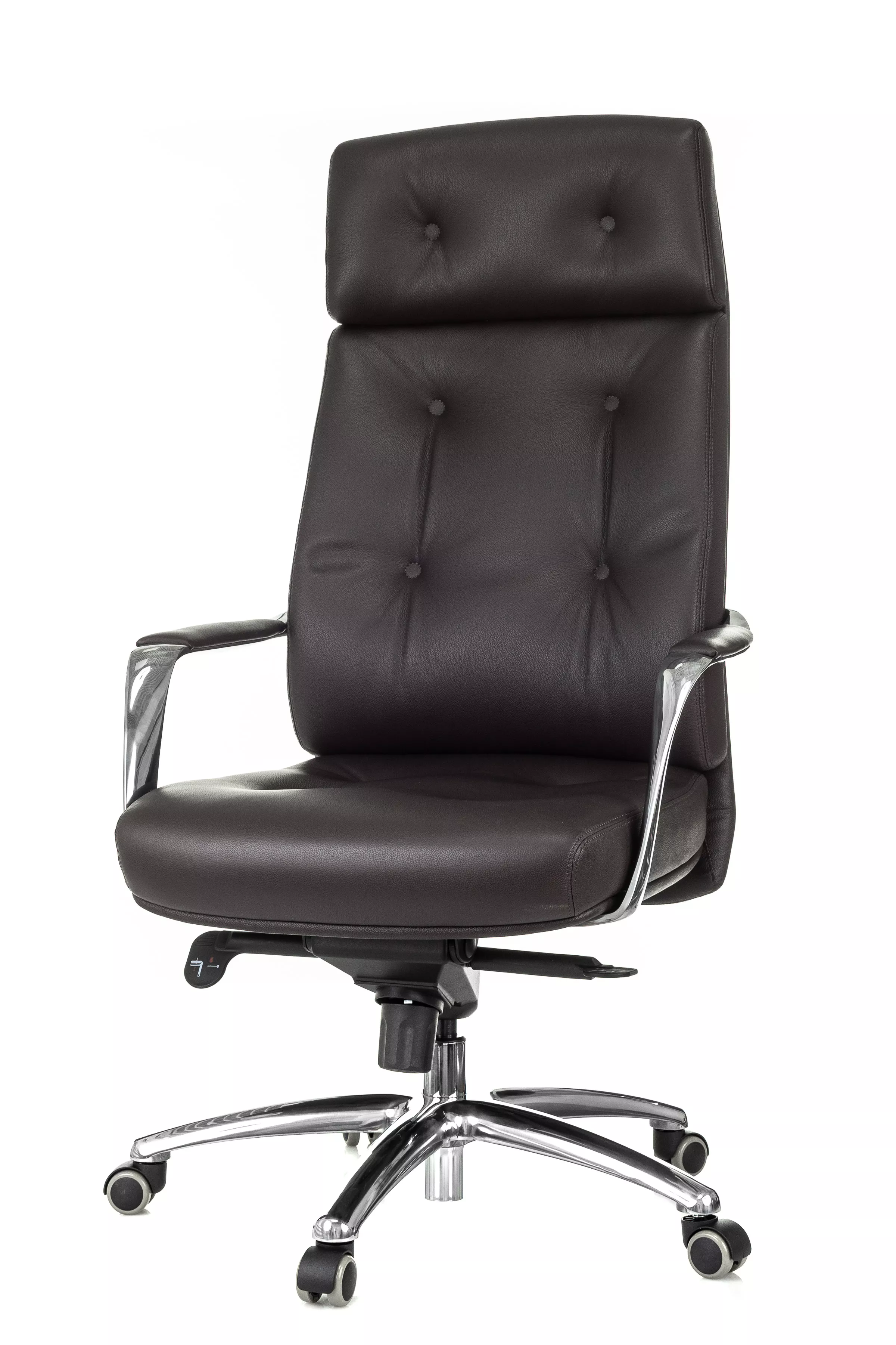 Массивная обивка с декоративными элементами у кресла для руководителей Дао создают солидный образ. Он не уступает громоздким стационарным моделям мебели, но остается мобильным за счет колесной базы. Хромированные подлокотники подчеркивают современный стиль кресла. Специальная форма крепления газового амортизатора к сиденью повышает его эффективность, снижая давление на бедра и позвоночный столб.