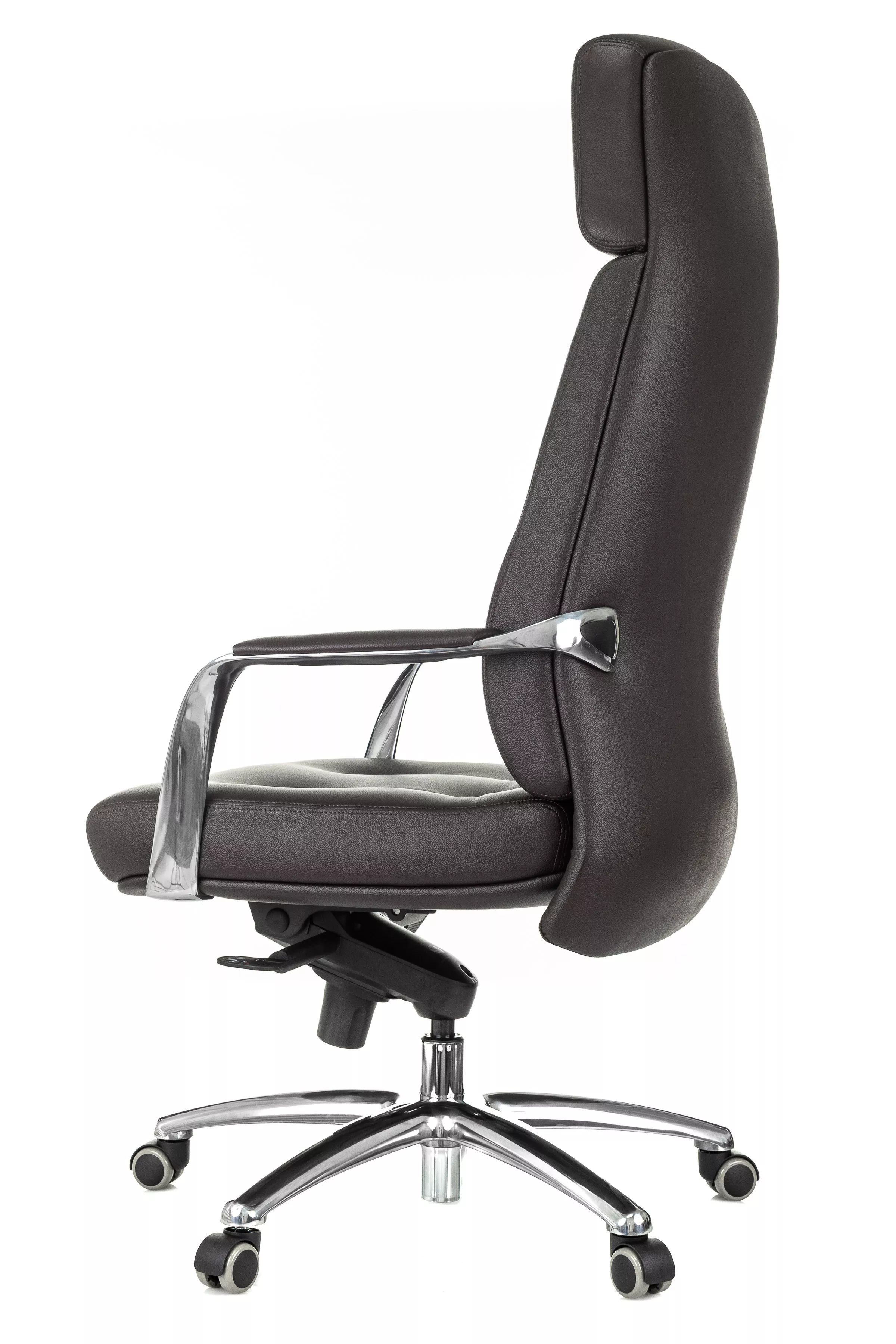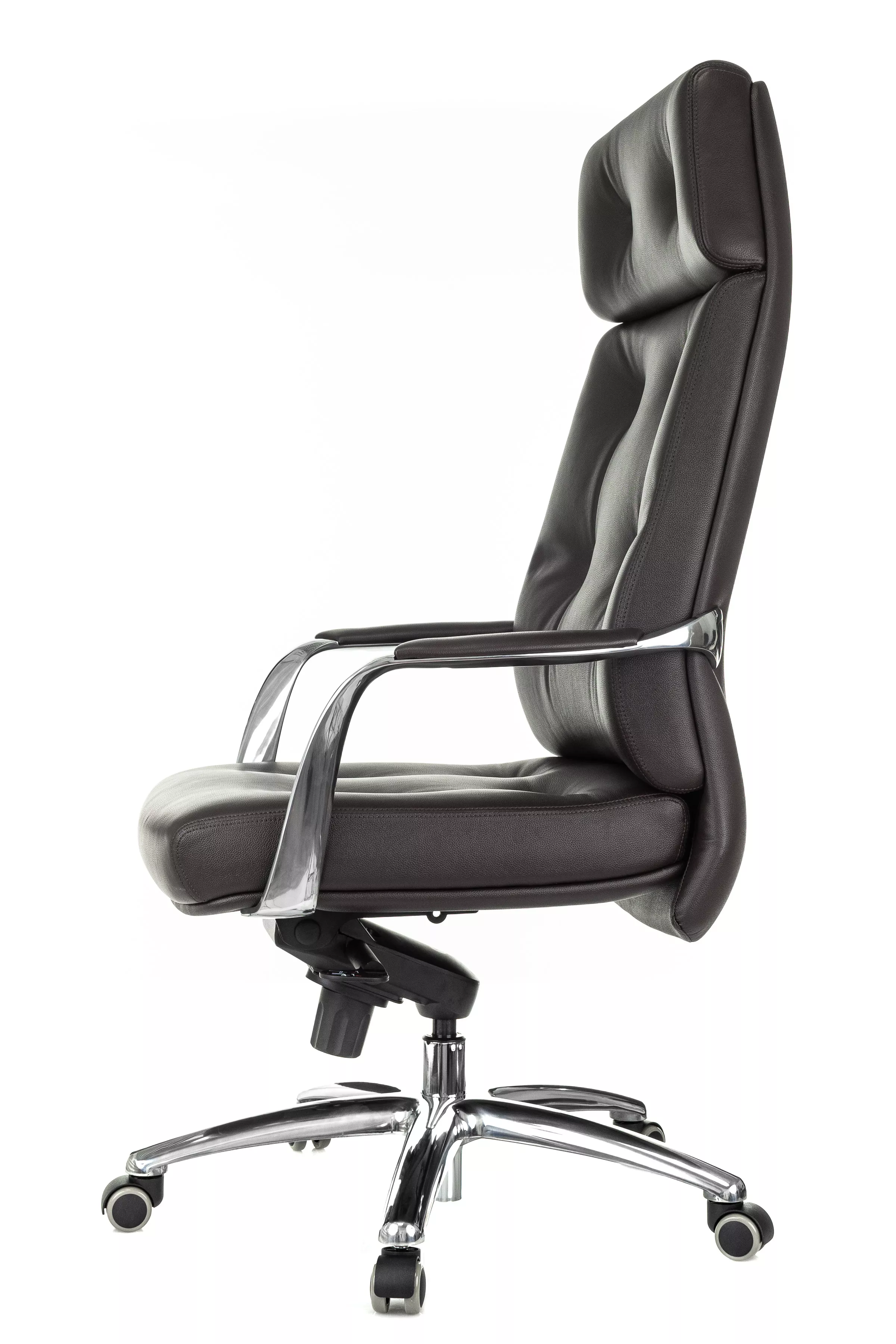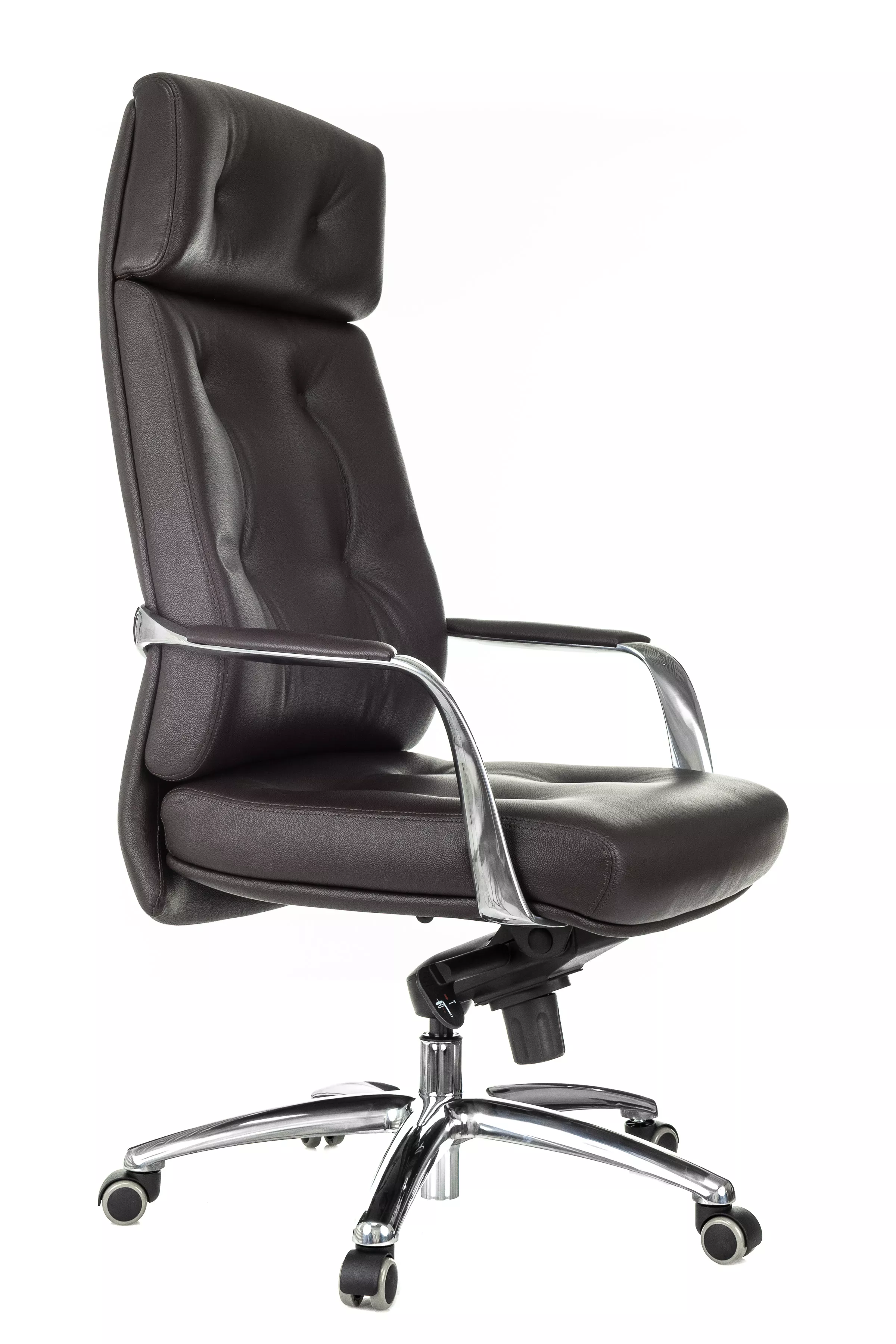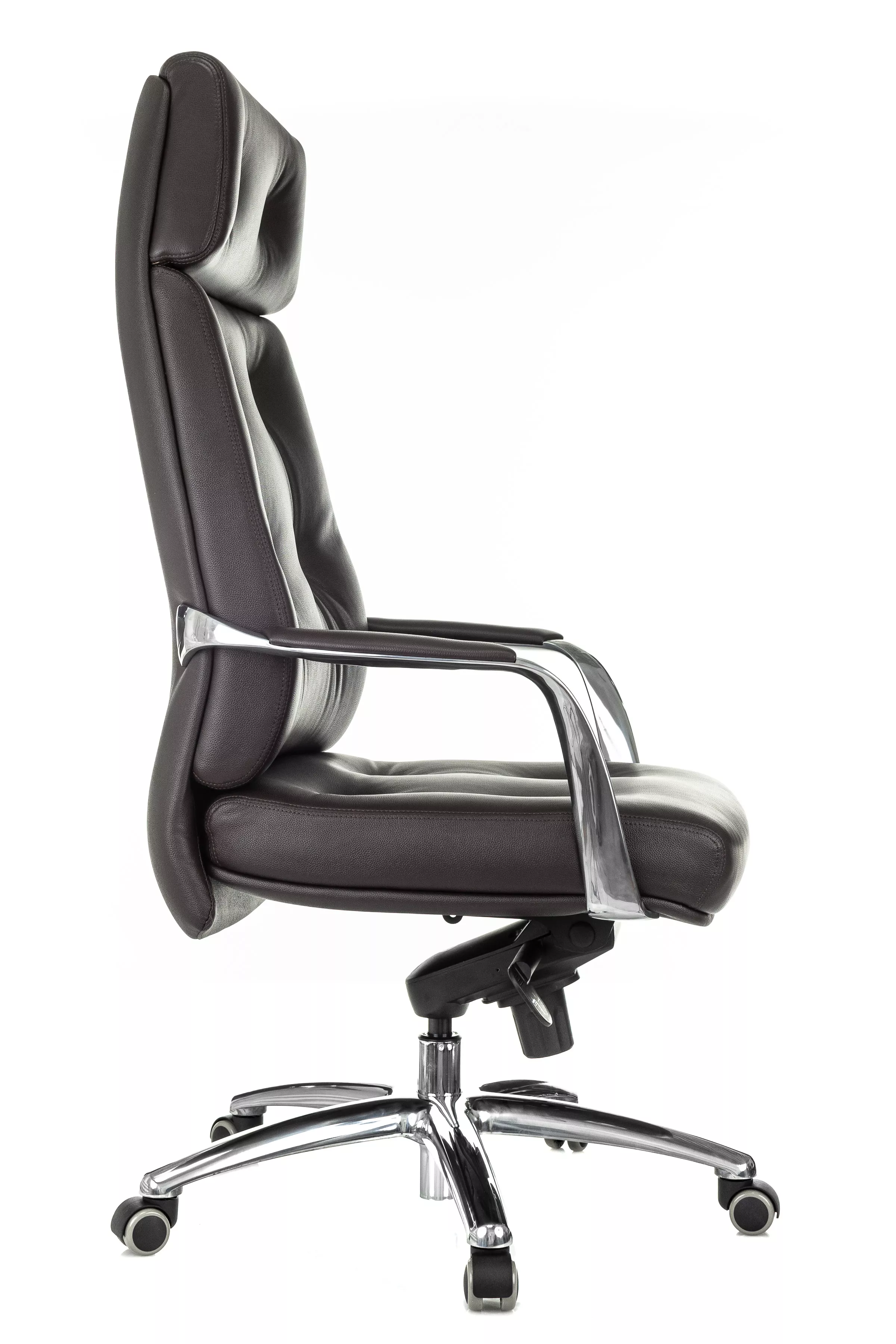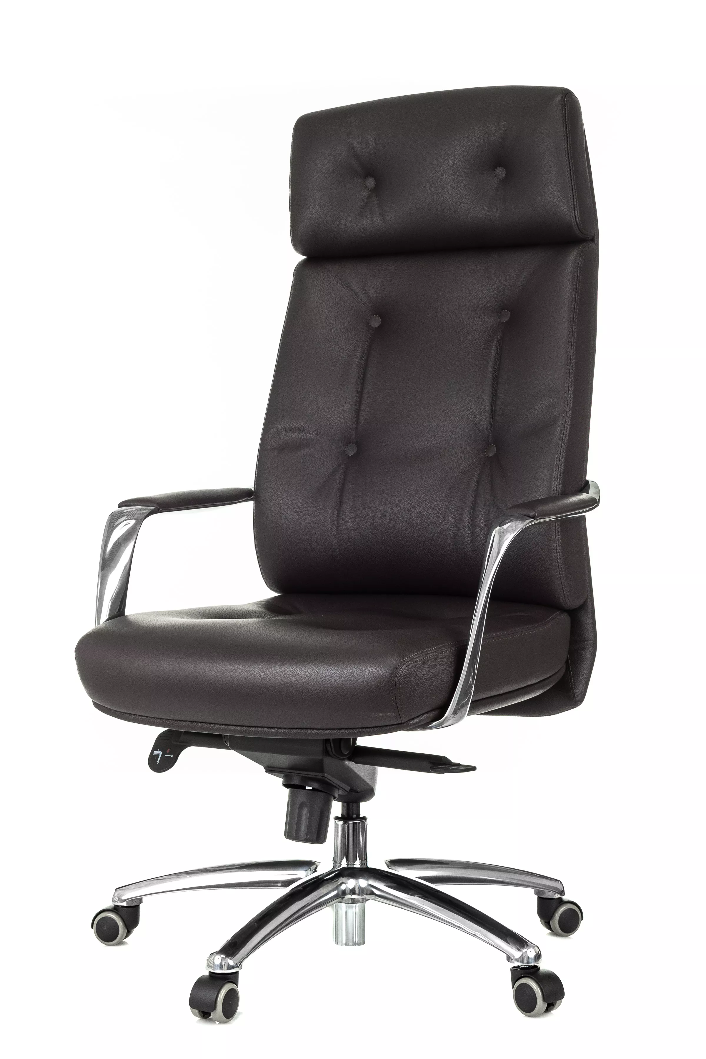 Массивная обивка с декоративными элементами у кресла для руководителей Дао создают солидный образ. Он не уступает громоздким стационарным моделям мебели, но остается мобильным за счет колесной базы. Хромированные подлокотники подчеркивают современный стиль кресла. Специальная форма крепления газового амортизатора к сиденью повышает его эффективность, снижая давление на бедра и позвоночный столб.