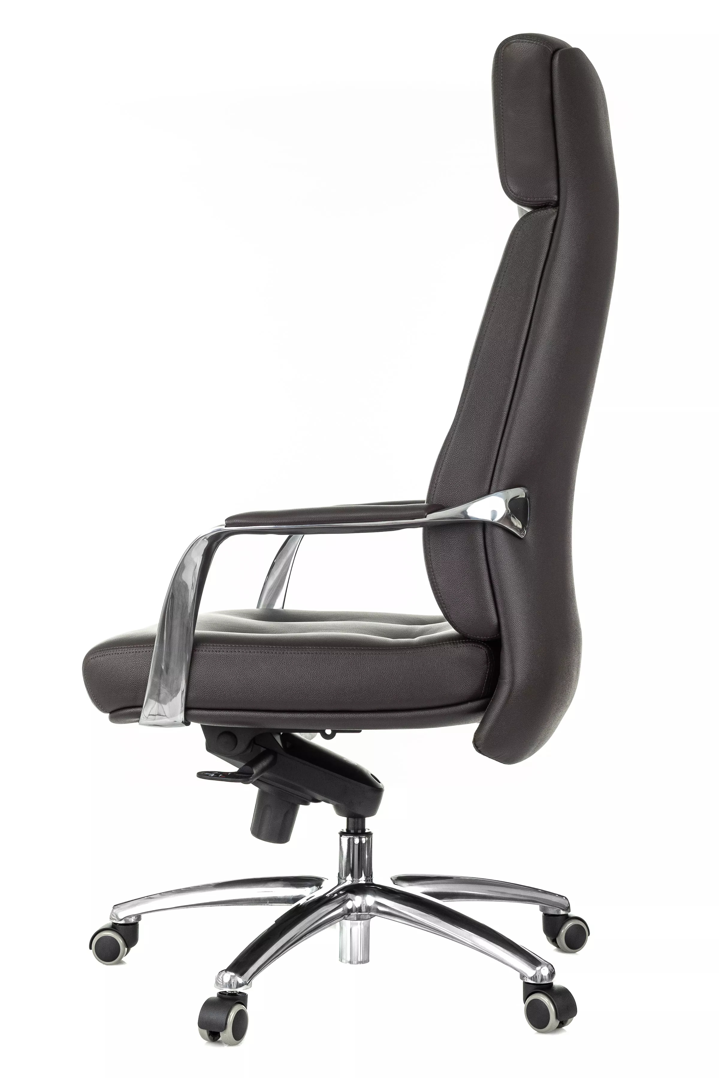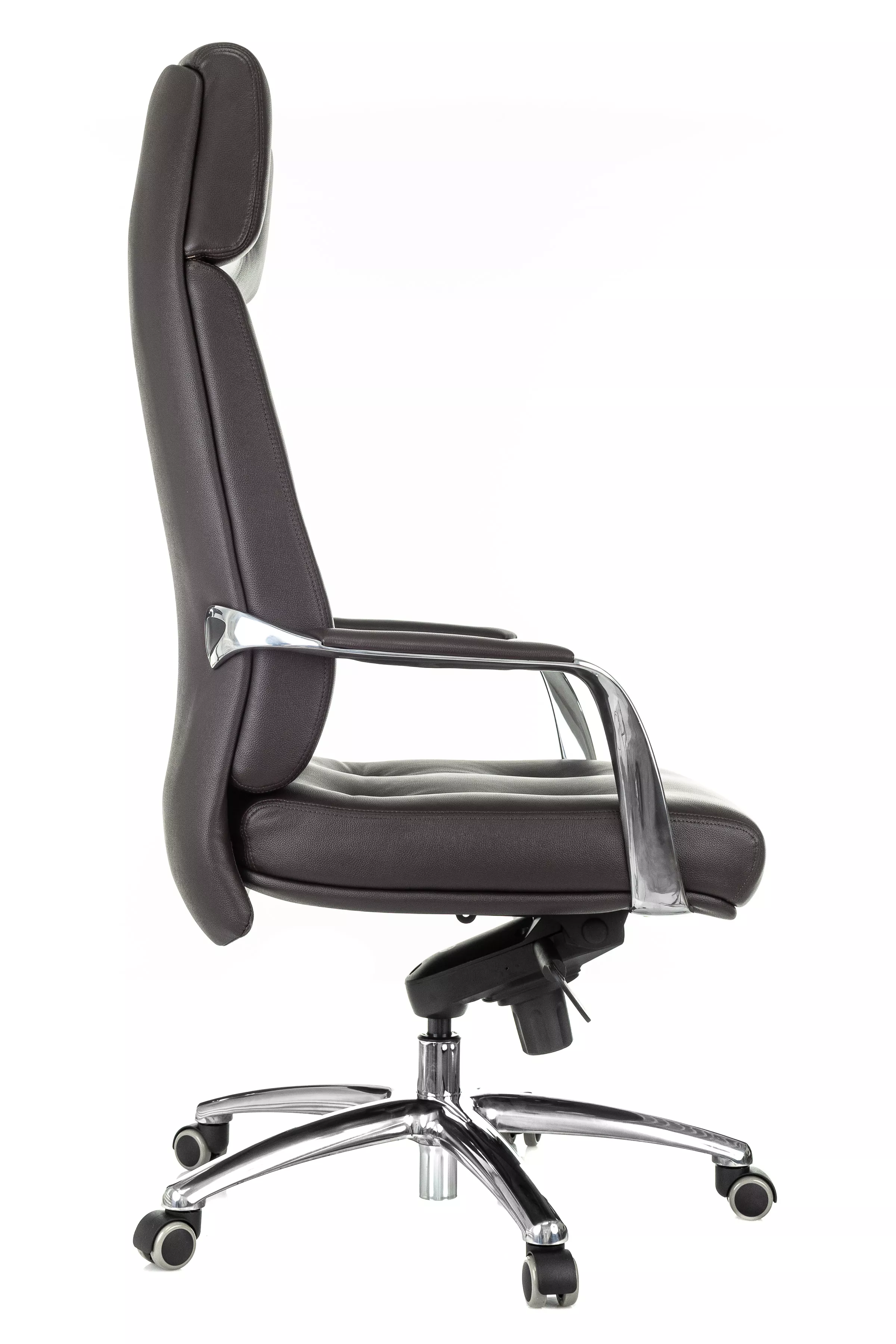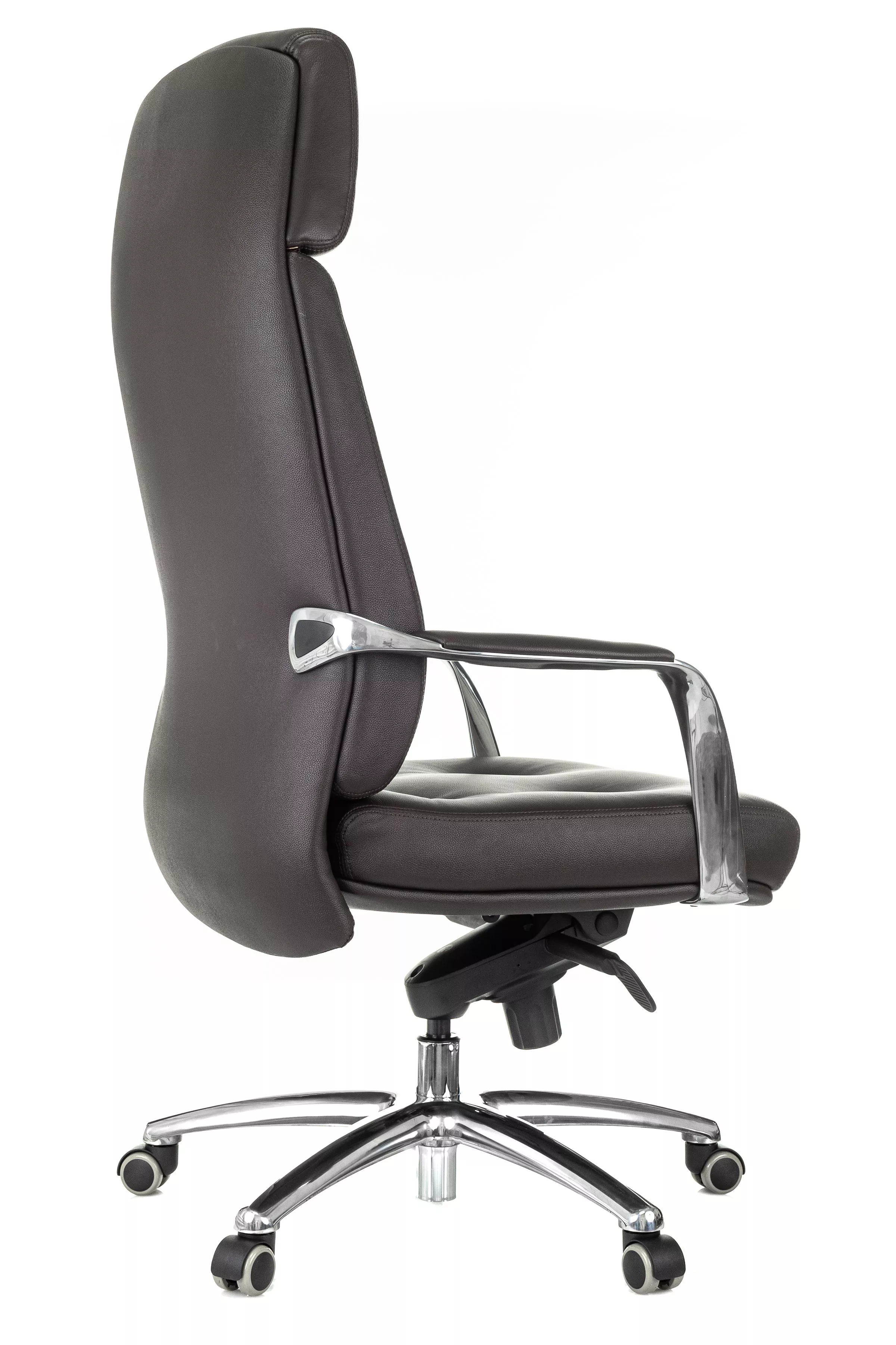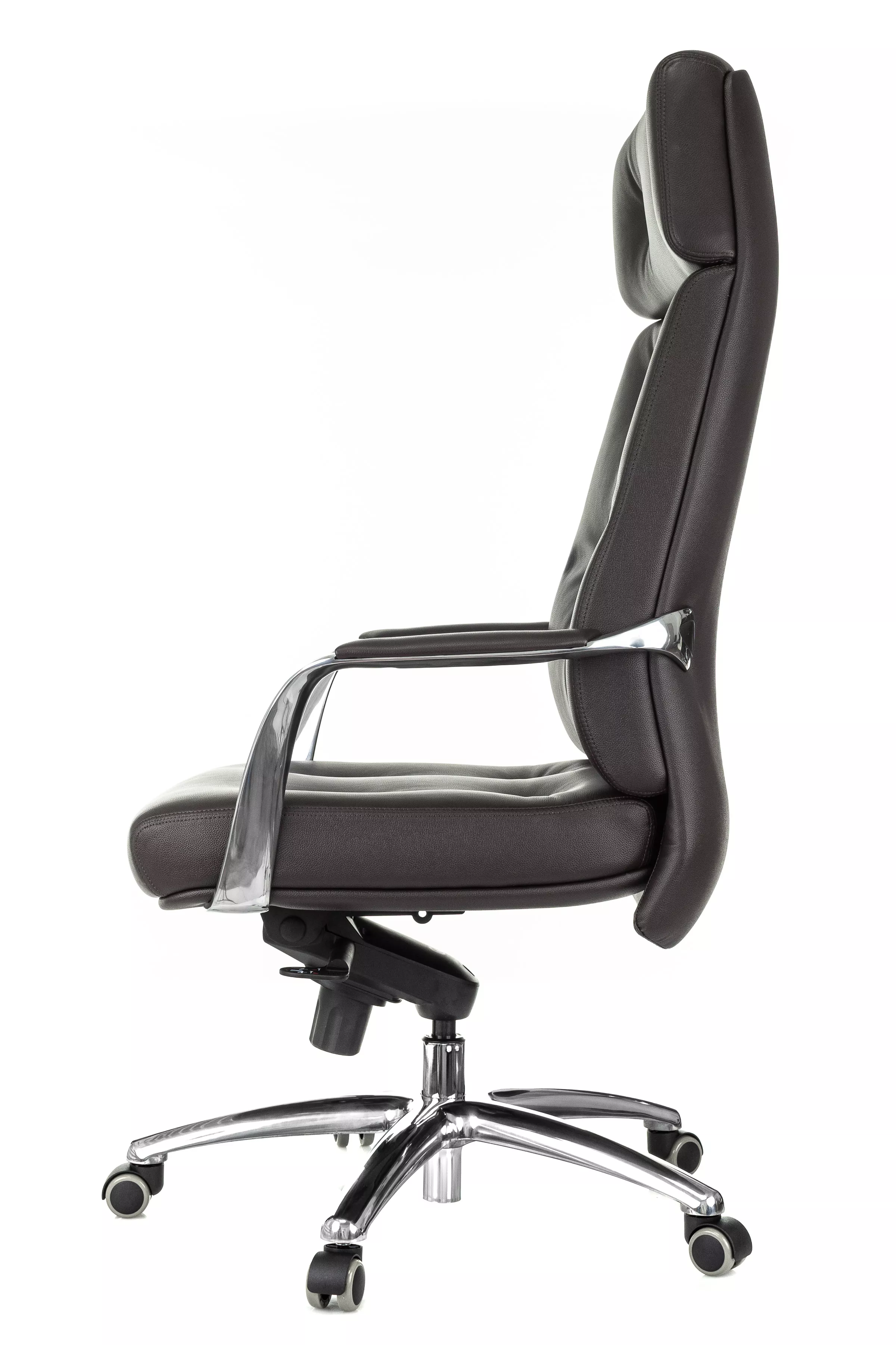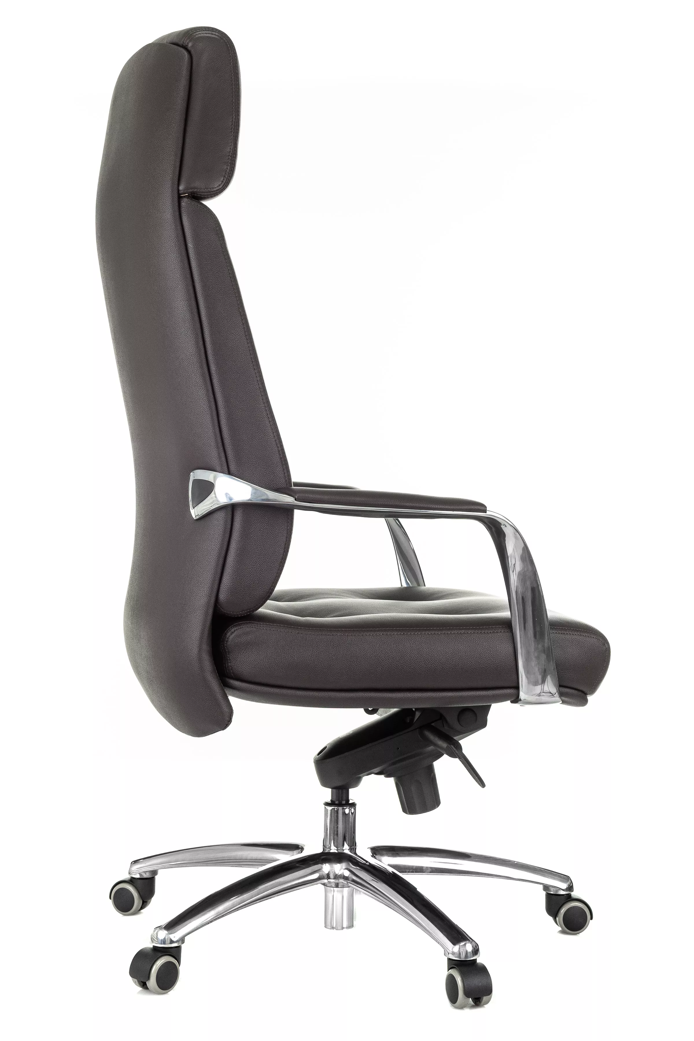 Массивная обивка с декоративными элементами у кресла для руководителей Дао создают солидный образ. Он не уступает громоздким стационарным моделям мебели, но остается мобильным за счет колесной базы. Хромированные подлокотники подчеркивают современный стиль кресла. Специальная форма крепления газового амортизатора к сиденью повышает его эффективность, снижая давление на бедра и позвоночный столб.