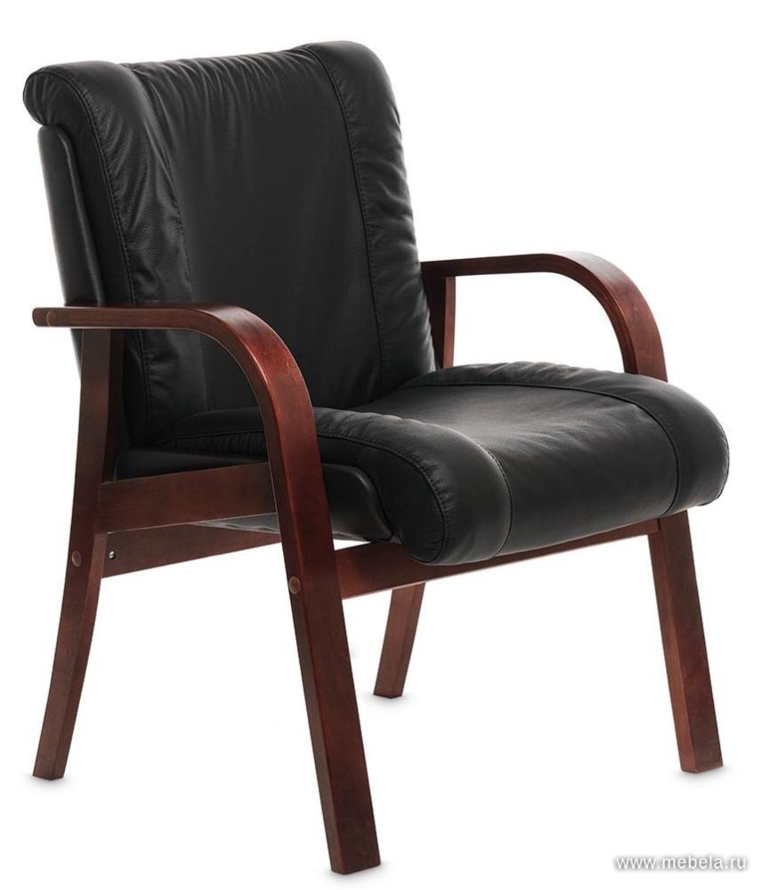 Кресло с классическим абрисом и прочной деревянной конструкцией и строгой кожаной обивкой подойдет для солидных офисов как свидетельство успешности компании. Модель создана с учетом всех эргономических норм и комфортного расположения тела и рук пользователя для долгих совещаний и деловых встреч.