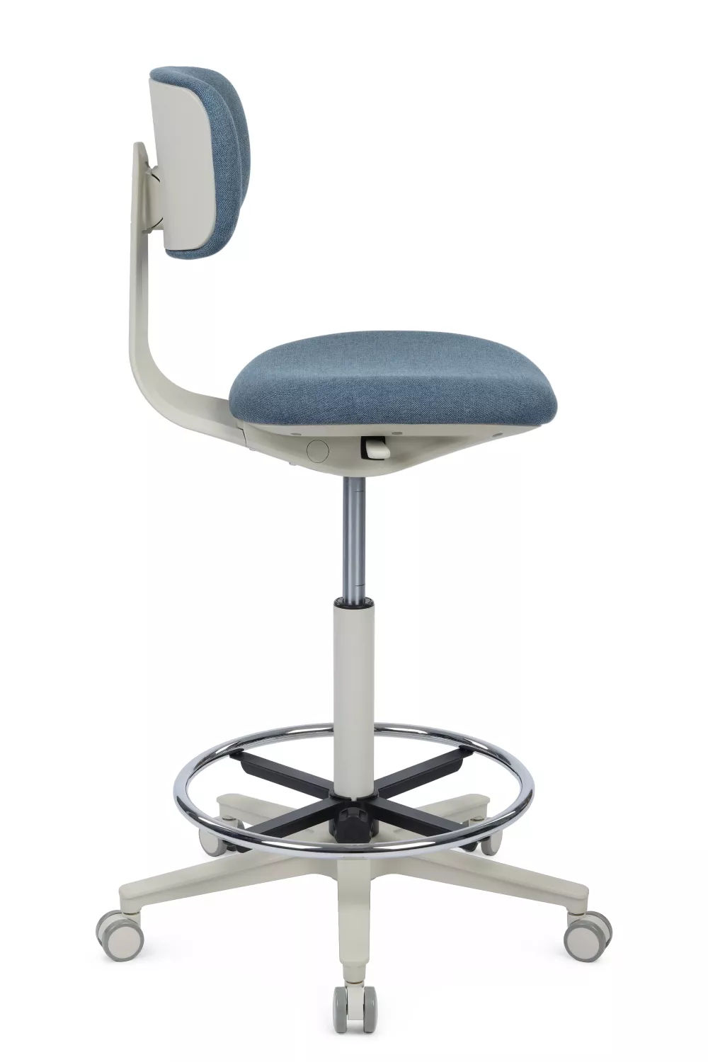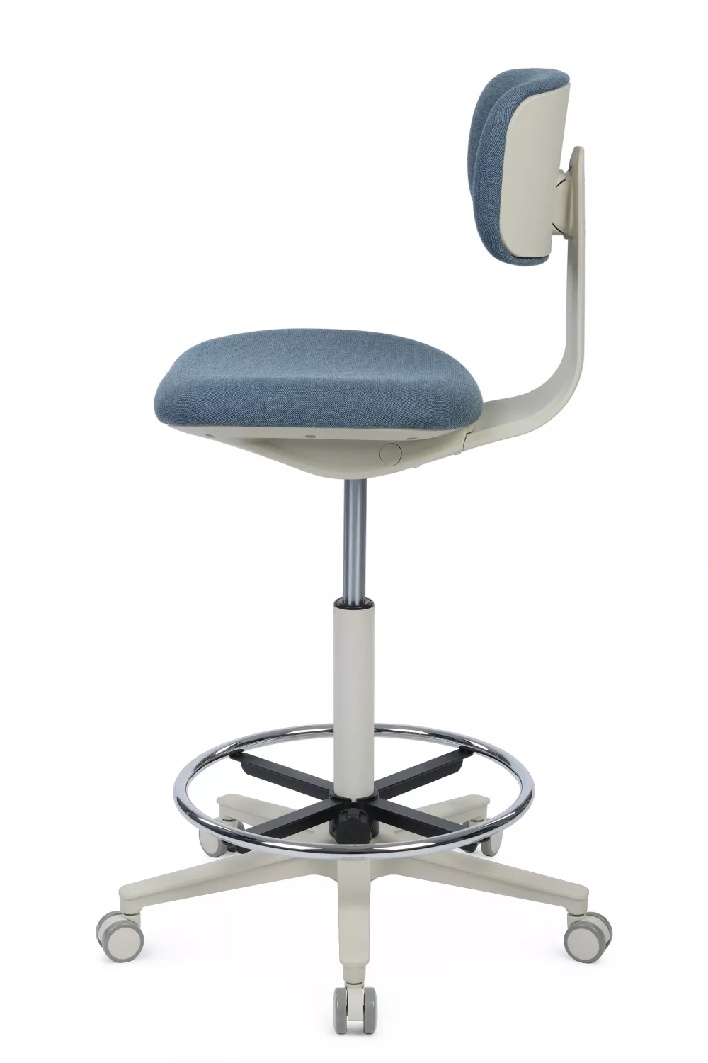 Кресло имеет прочную крестовину диаметром 600 мм из высококачественного пластика с упором, что обеспечивает стабильность и безопасность во время использования. Ролики диаметром 50 мм с покрытием PU гарантируют легкость передвижения по различным поверхностям, не оставляя следов.
