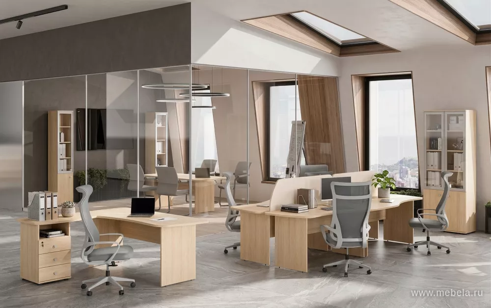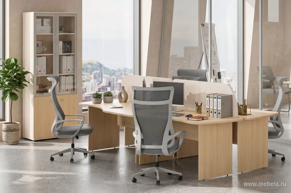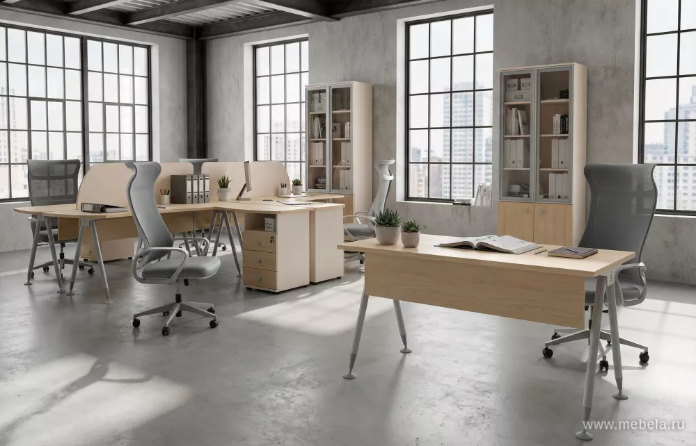 Каждым своим элементом мебель выделяется из сотен других офисных гарнитуров. Двухцветная схема оживит любой офис, а V-образные ножки некоторых столов и необычные рукоятки ящиков усилят этот эффект. В эту офисную мебель встроены кабель-каналы, она снабжена системой регулировки ножек и центральны...