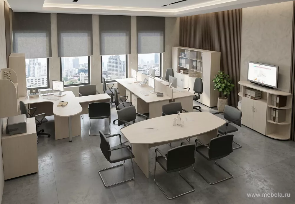 Гарнитуры мебели Комфорт предлагают широкий ассортимент во всем. Сразу 2 доступных цветовых решений из ламинированного ДСП и множество вариантов конструкций одних и тех же элементов мебели. Оборудовать строгий конференц-зал, уютную рабочую зону или одиночное офисное место с мебелью Комфорт получится легко.