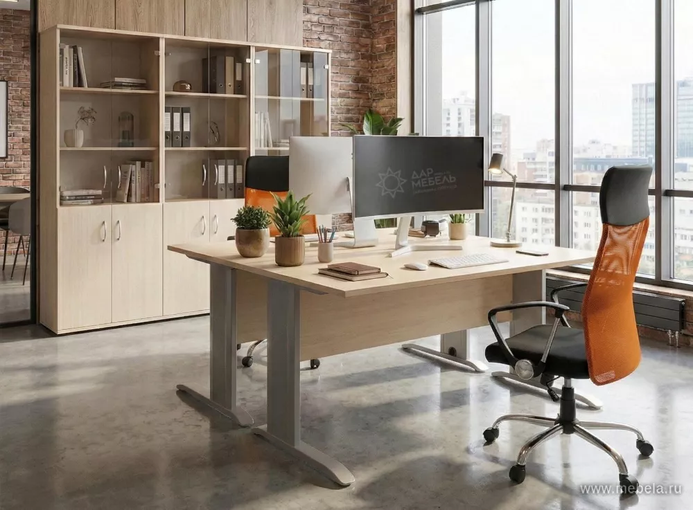 Высокотехнологичный стиль мебели для персонала Рива Металл (Riva) придаст любому офису футуристический стиль. Современным тенденциям этот комплект соответствует не только внешне. Внутри полых опор есть возможность для прокладки кабелей, а на самих столах есть выходы с заглушками для подключения.