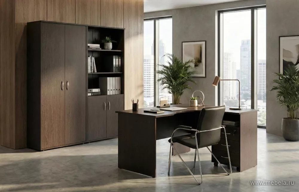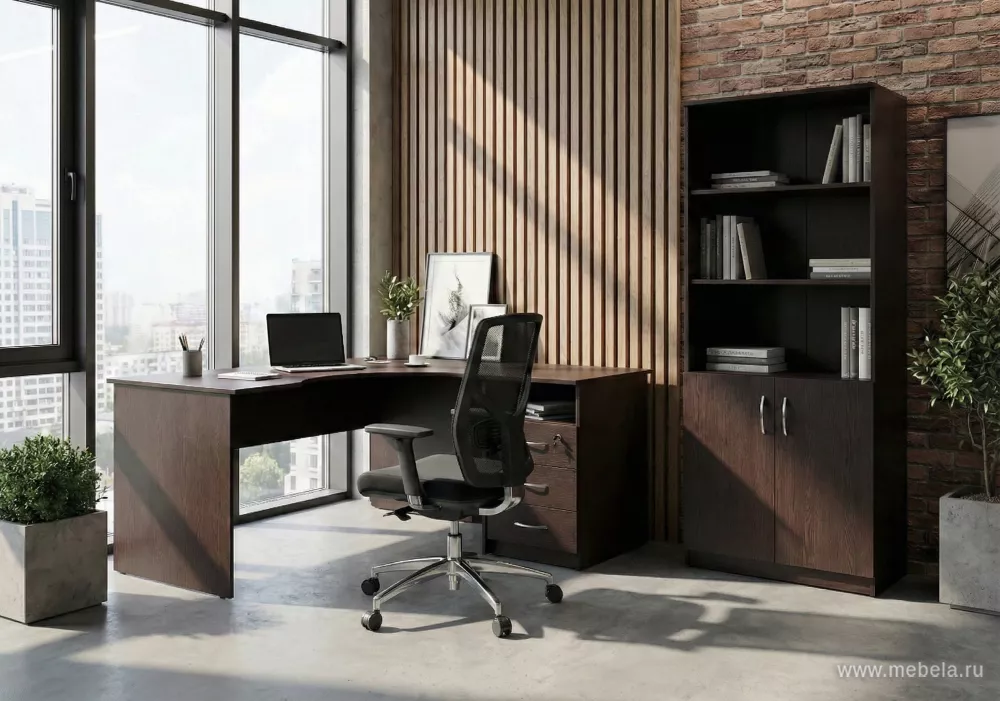 Мебель для офиса Рива Венге (Riva) докажет, что дизайн интерьера может быть одновременно строгим и инновационным. Строгость достигается за счет темного цвета Венге ЛДСП, а инновационность – комбинированными металлик-вставками. Весь этот внешний лоск сохранится надолго, потому что ламинат отталкивает грязь и легко моется....