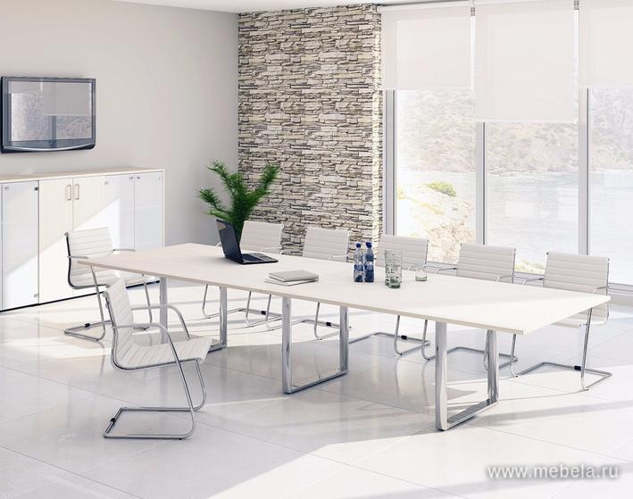 Роскошь в Хай-Тек стиле – так можно охарактеризовать столы для переговоров Орбис, Карре. Идеальная полированная поверхность столешниц из ламинированного ДСП или закаленного стекла создает высокотехнологичный образ в сочетании с хромированными П-образными опорами.
